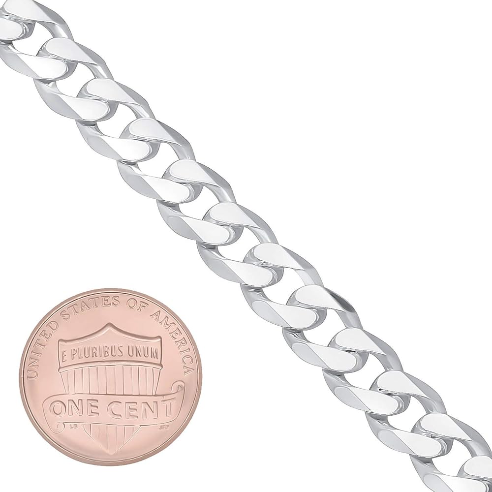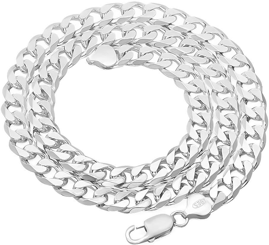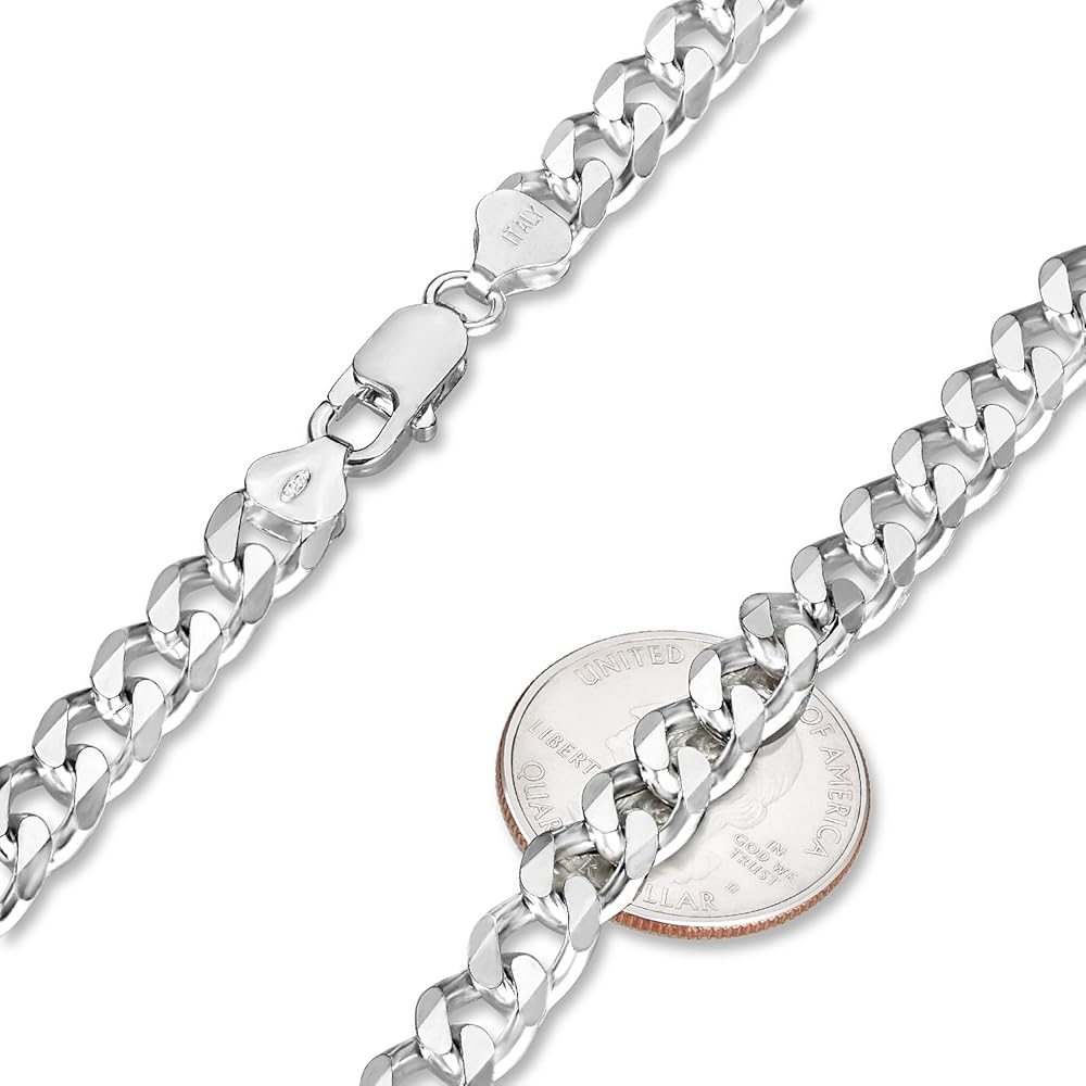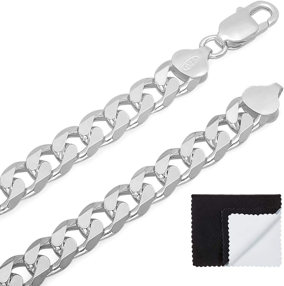 Offered in a variety of length options, this nickel-free solid .925 sterling silver 8.5mm Cuban link curb chain features subtly twisted links that lay flat, with beveled facet cuts to intensify reflective shine. These hypoallergenic chains made in Italy with superior craftsmanship feature a sturdy lobster claw clasp with a '.925 Italy' authenticity hallmark. Each chain ships nicely tucked into a tarnish-resistant black velvet pouch alongside a lifetime authenticity guarantee & warranty card, and a premium microfiber jewelry polishing cloth to help clean, polish, & maintain your sterling silver jewelry.