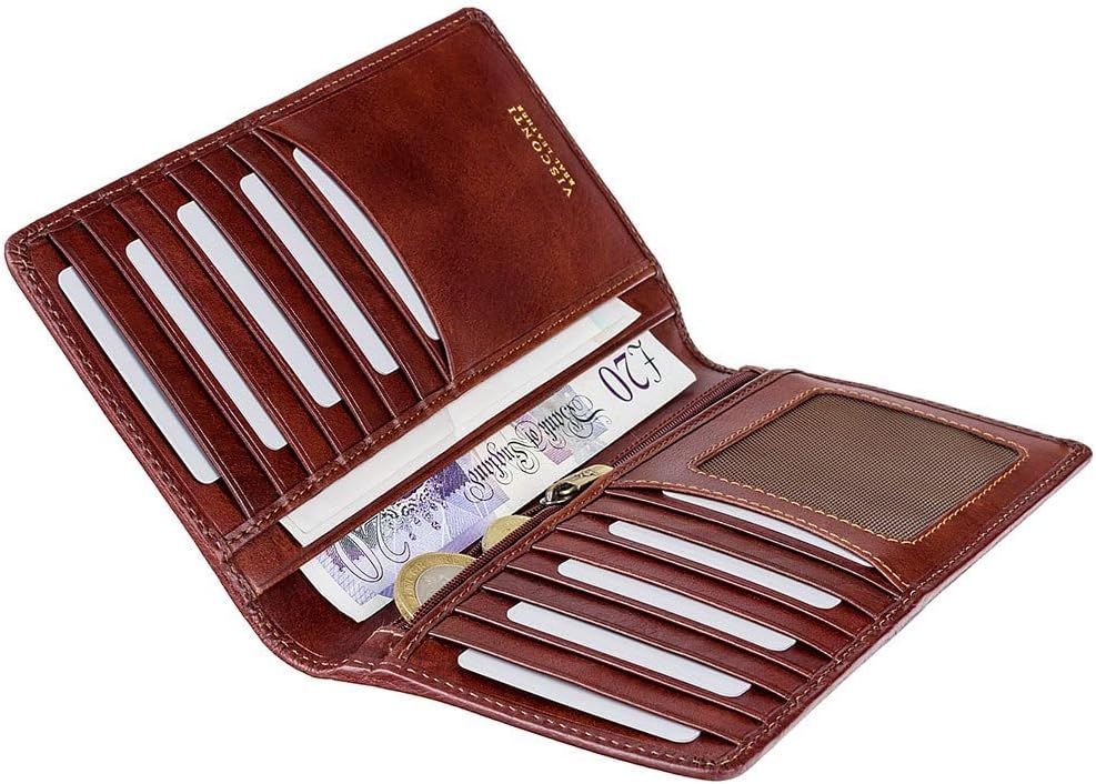 فسكونتي محفظة من الجلد الطبيعي بتقنية حجب تحديد الهوية بموجات الراديو 45 من توسكاني (بيج داكن)