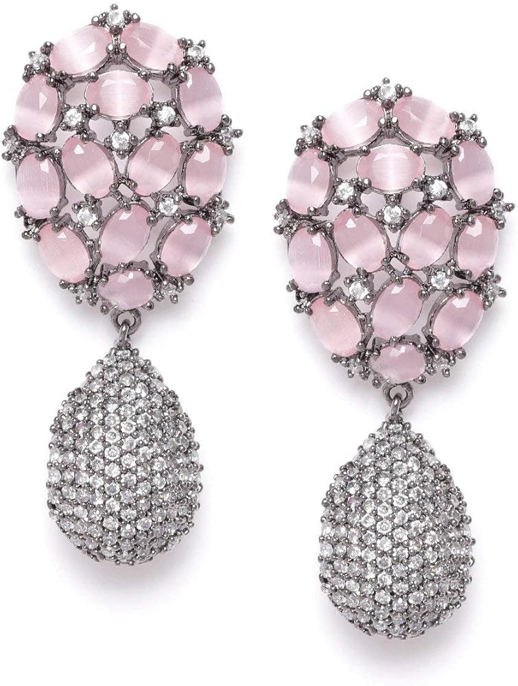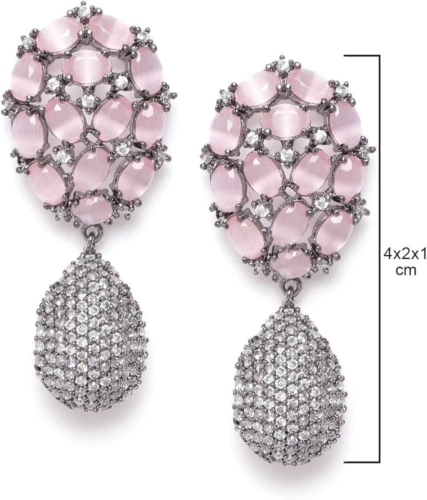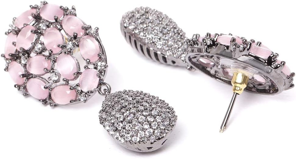 خامة عالية الجودة: أقراط برياسي المطلية بالفضة هذه مصنوعة من المعدن الفاخر والأحجار الوردية والماس الأمريكي.