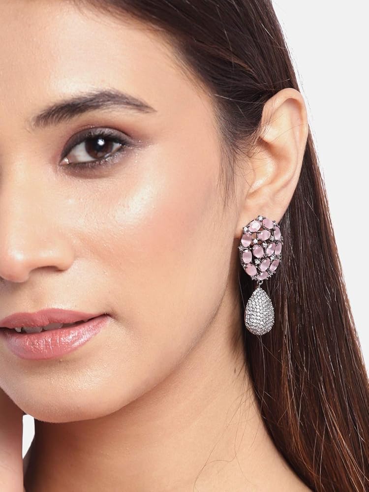 تصميم وأسلوب جذاب: تتميز هذه الأقراط الفضية للنساء (مطلية) بتصميم جميل على شكل دمعة مرصعة بالألماس الأمريكي والأحجار الوردية المقطوعة بدقة. تتميز هذه الأقراط المتدلية للنساء بنمط معقد مصنوع بشكل رائع على يد حرفيين مهرة. تتميز هذه الأقراط الفضية المرصعة للفتيات بتشطيب وتفاصيل ممتازة لتجعلك تبدين وتشعرين بالجمال.