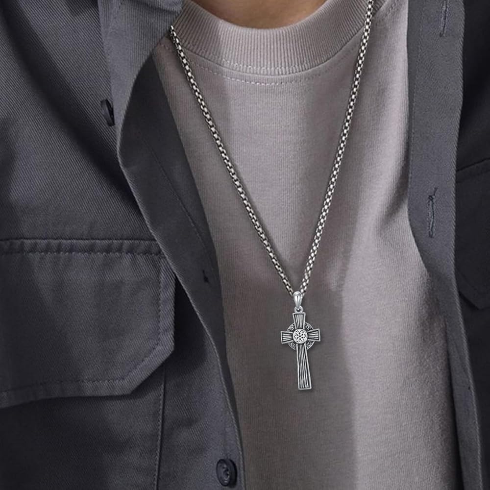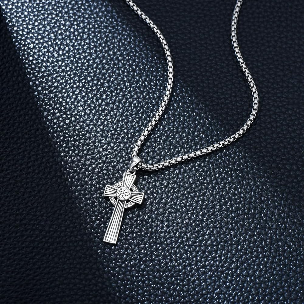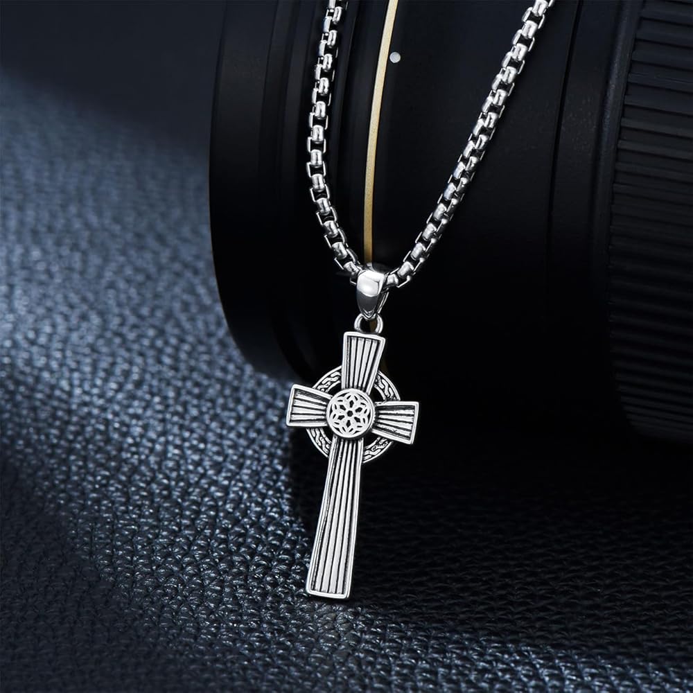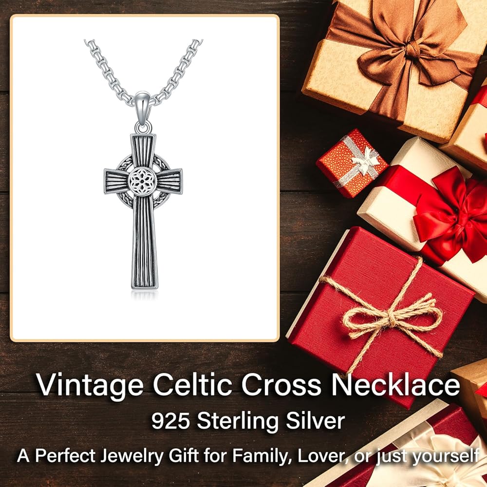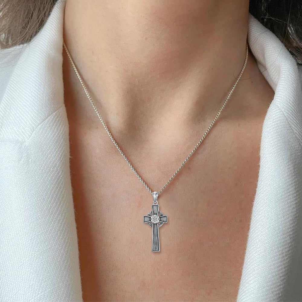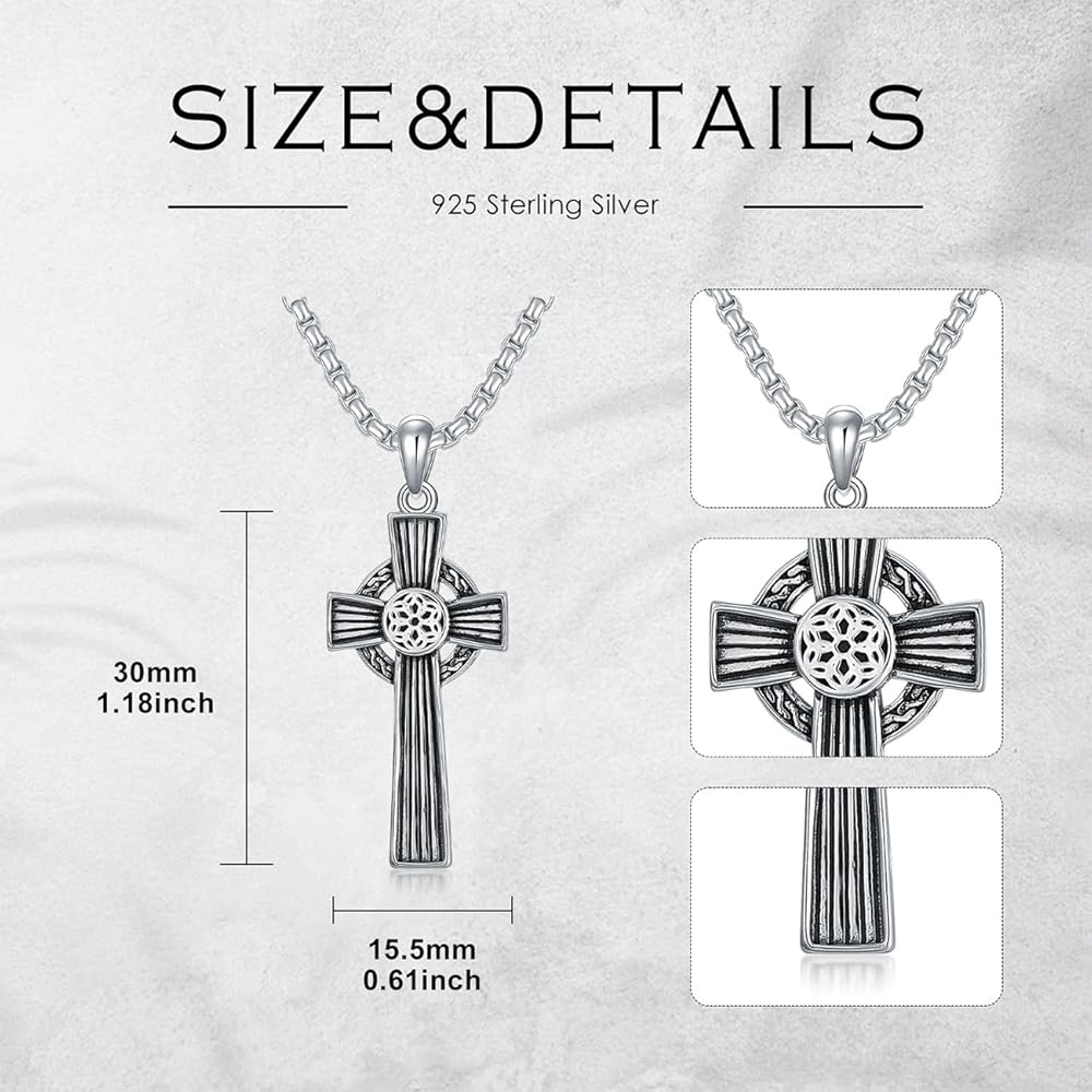【الخامة: قلادة الصليب الأيرلندية مصنوعة من الفضة الإسترلينية عيار 925، مؤكسدة لخلق نسيج عتيق، خالية من الرصاص والنيكل، لا تسبب الحساسية، مع سلسلة صندوقية مستديرة من الفولاذ المقاوم للصدأ، آمنة وقوية.