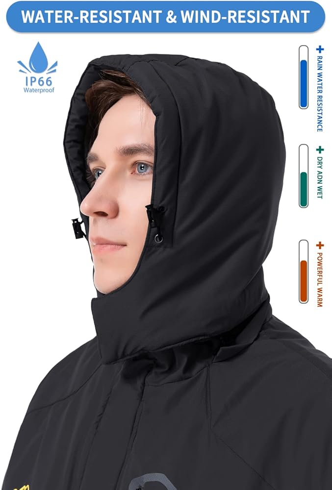 مواد دافئة وخفيفة الوزن: مطلية بطبقة عازلة للمياه، نسيج متين مع بطانة من الصوف الناعم وبطانة دافئة من القطن خفيفة الوزن والتي تضمن أفضل احتفاظ بالحرارة. تصميم ملائم ومريح مع مادة سريعة الجفاف.