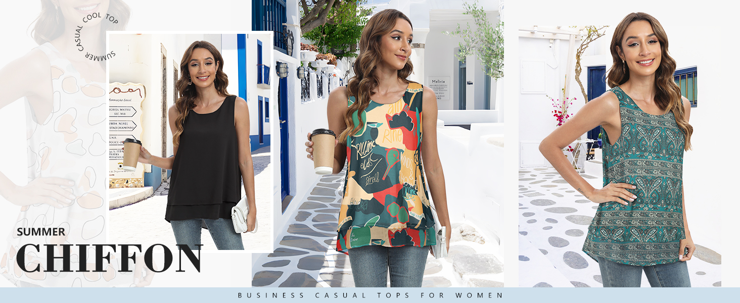 المواد: قمصان نسائية صيفية بدون أكمام مصنوعة من الشيفون خفيف الوزن، خامة ناعمة ومريحة ومسامية، بلوزة أساسية غير رسمية للارتداء، تجعلك تشعرين بحالة جيدة طوال اليوم.