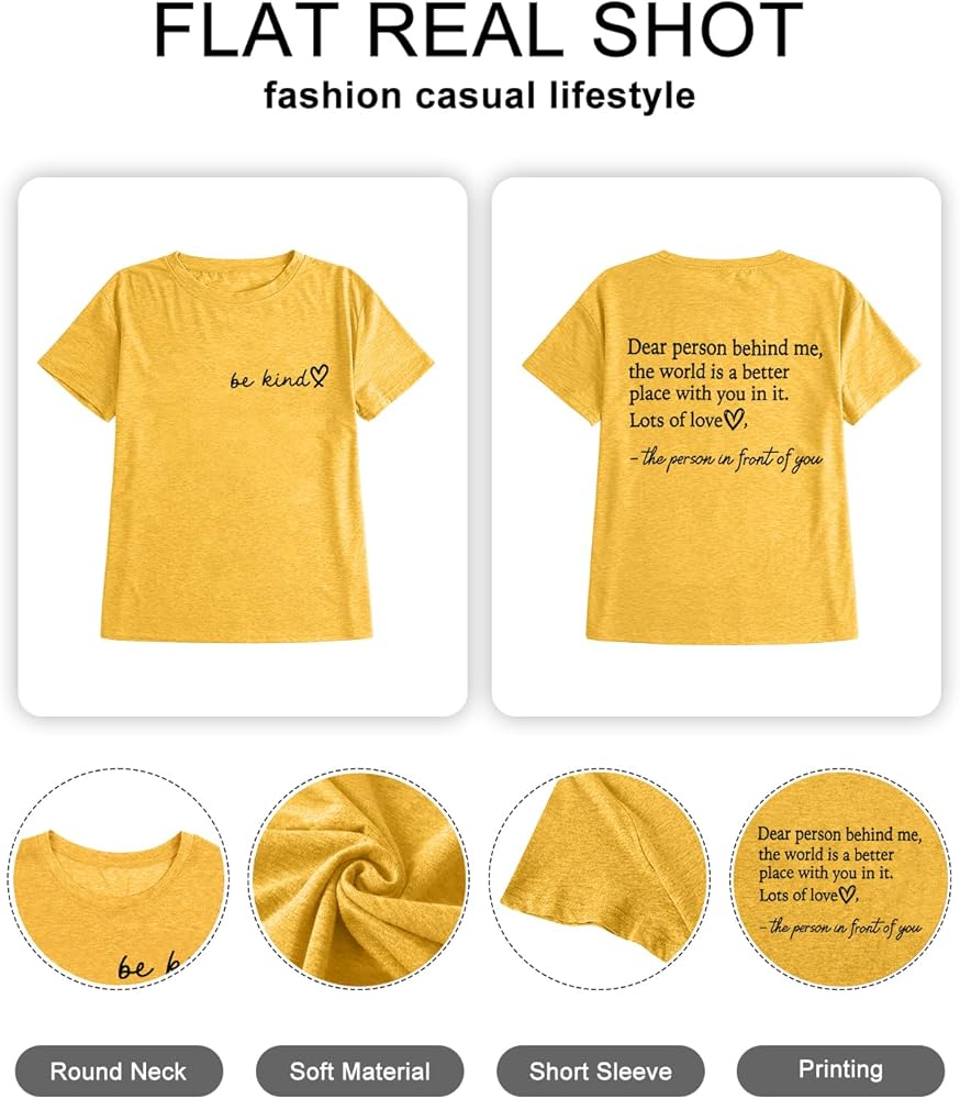 السمات: قميص بمقاس كبير يتميز برسومات "Be Kind" على المقدمة، تي شيرت Kindness قصير الأكمام، قمصان مدرسية باقتباسات ملهمة، تصميم قلب الحب اللطيف وملاءمة مريحة من خلال الخصر توفر ملاءمة كاجوال.