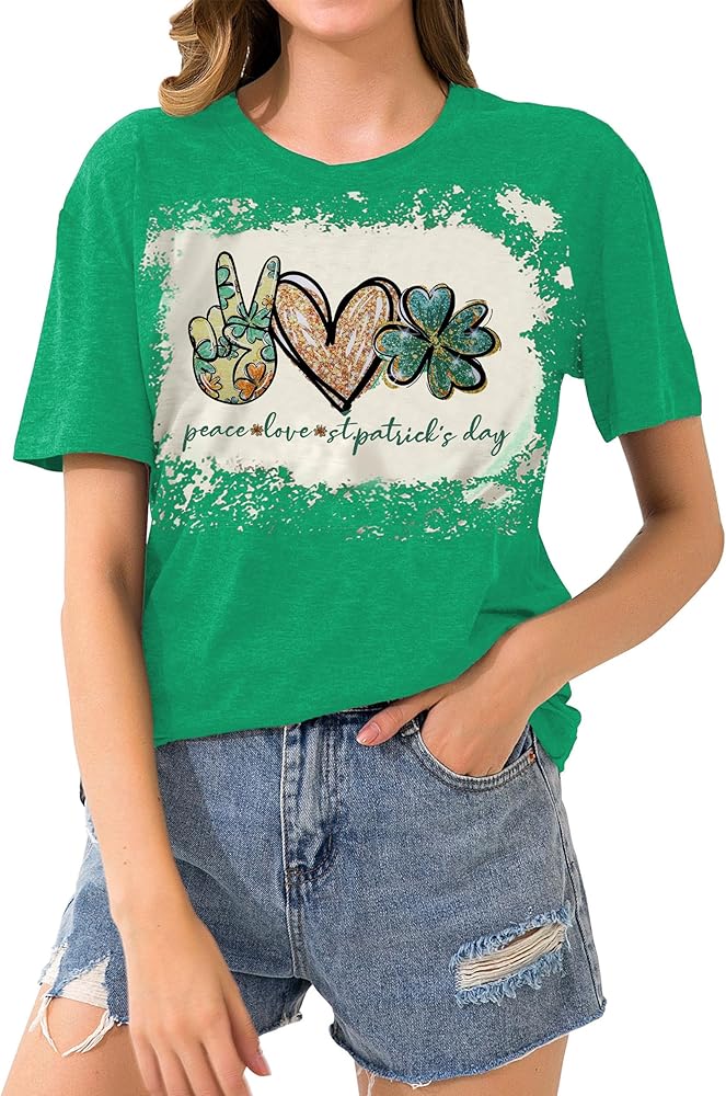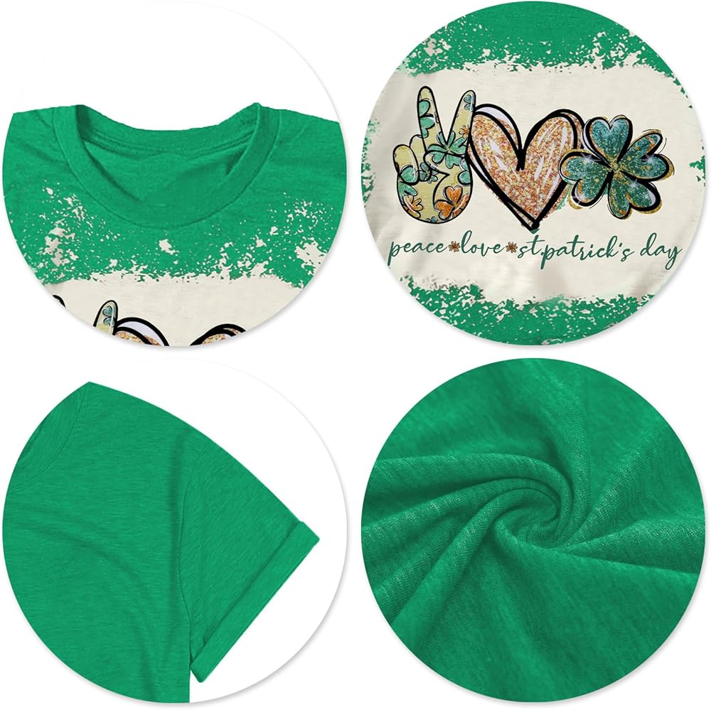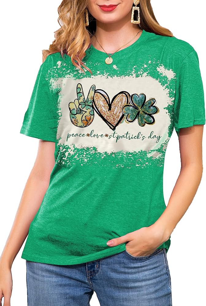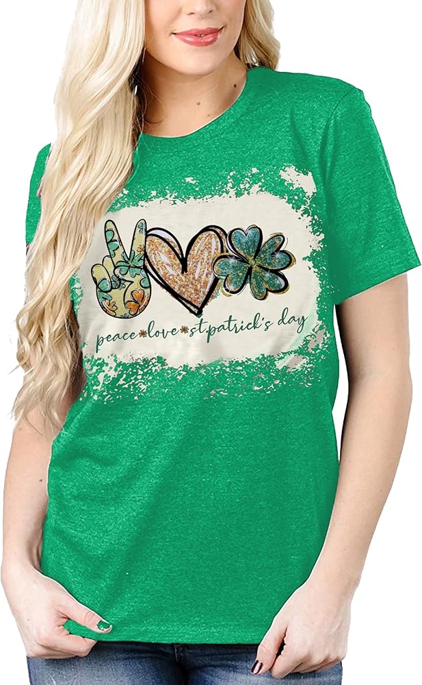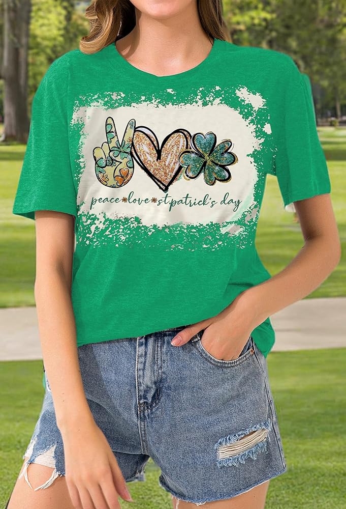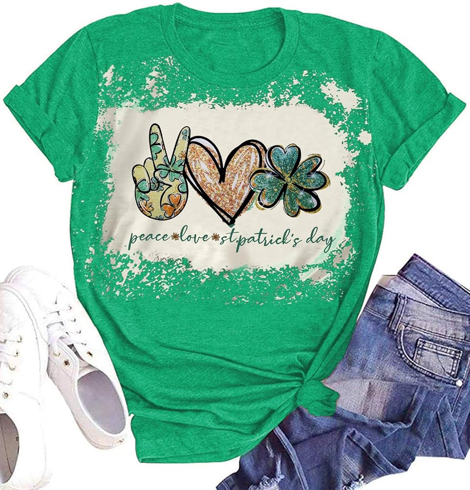 DESIGN FEATURES: Peace and Love St. Patrick's Day Top, wear this cute green lucky t-shirt and have fun with your friends this St. Patrick's Day! You will be the center of attention!