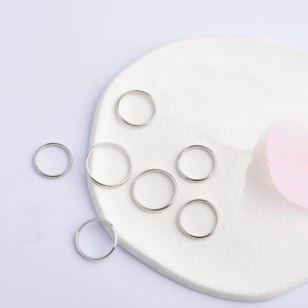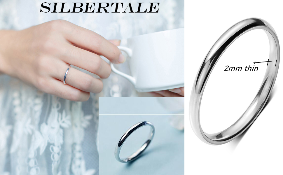 حلقات بسيطة بسيطة: عرض السوار 2 مم، صلب للغاية، لن يفقد بريقه، سوار من الفضة الإسترلينية يناسب أي إصبع. يأتي مع صندوق صديق للبيئة.