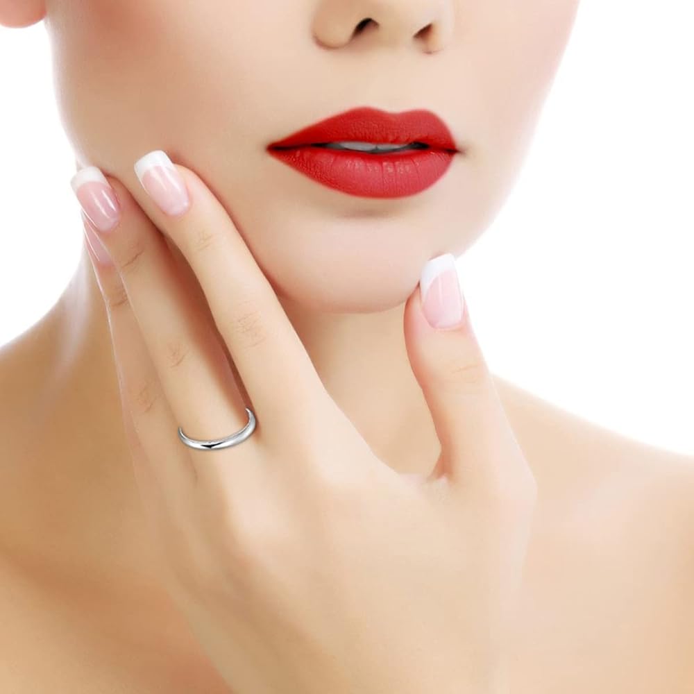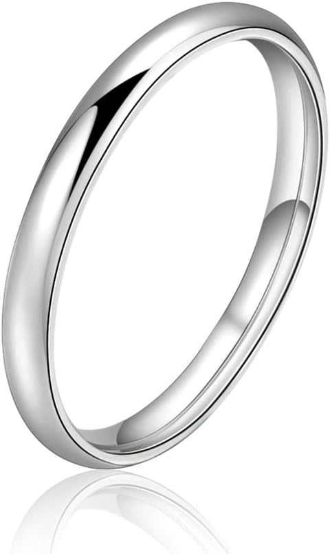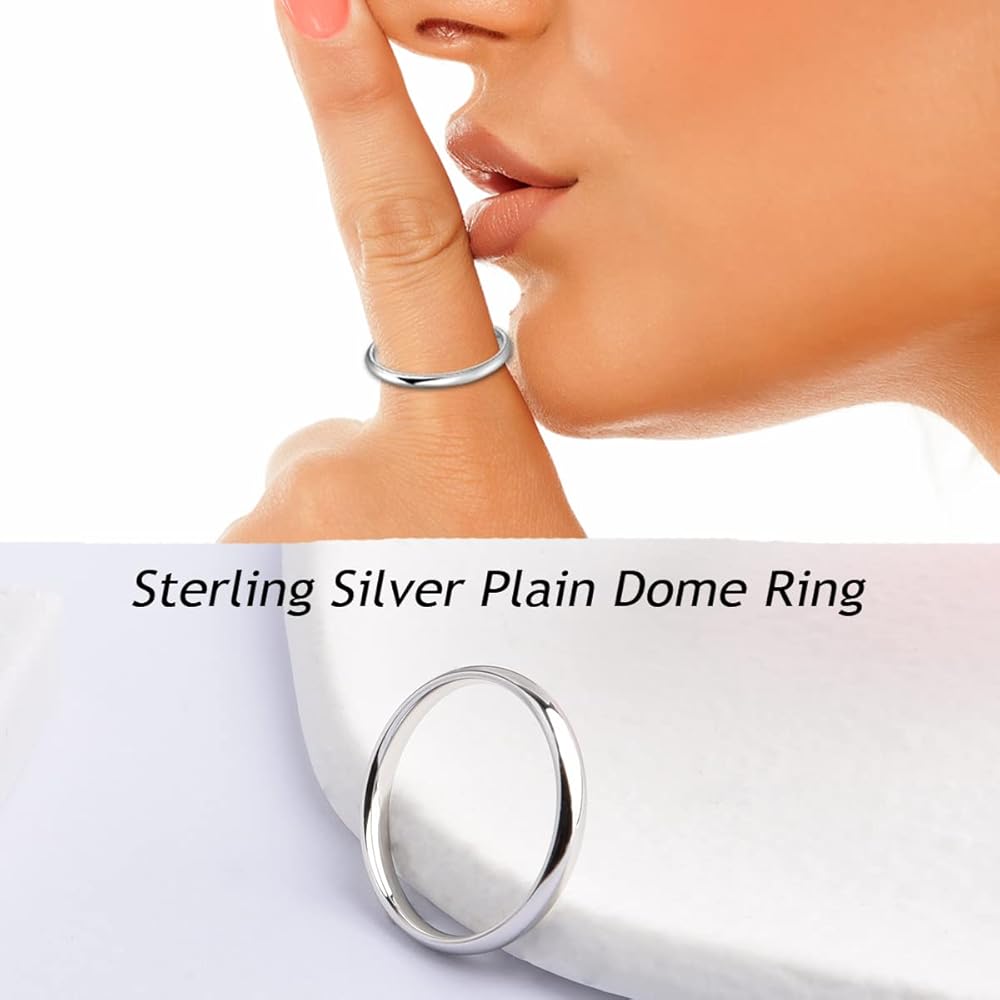 خاتم إصبع متوسط الطول: خاتم من الفضة الإسترلينية على شكل قبة سادة عالي التلميع، إنه بديل جيد لخواتم الزفاف الثمينة، ولا يسحب الشعر أو قرص الجلد، مريح في الارتداء.