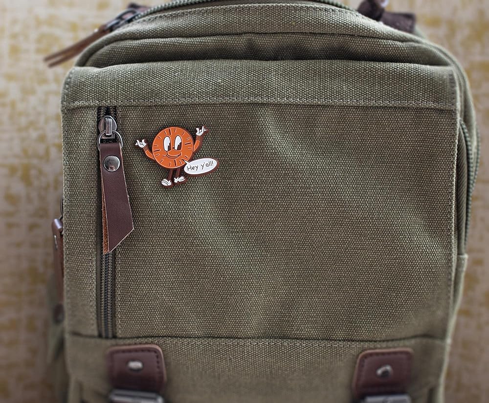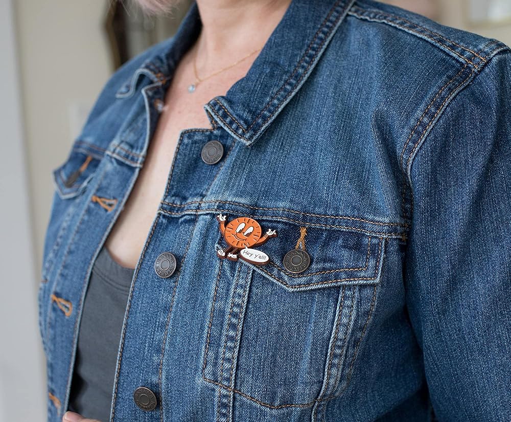 هيكل عالي الجودة: دبوس معدني بقاعدة متينة مع ترصيع مينا ملون. دعامة مطاطية للمقبض. يبلغ مقاس الدبوس حوالي 2 × 1.5 بوصة.