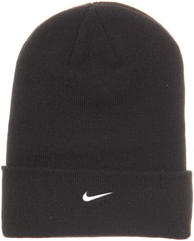 The Nike Cuff Knit Hat provides a snug fit and warmth with acrylic fibers and a cuffed design.