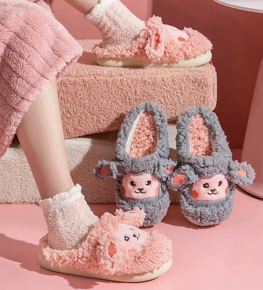 Material: The womens fluffy animal slippers are made of plush material which is soft and cozy. Girls house shoes with close toe design which can easily wear on and off, keeps your feet breathable and warm.