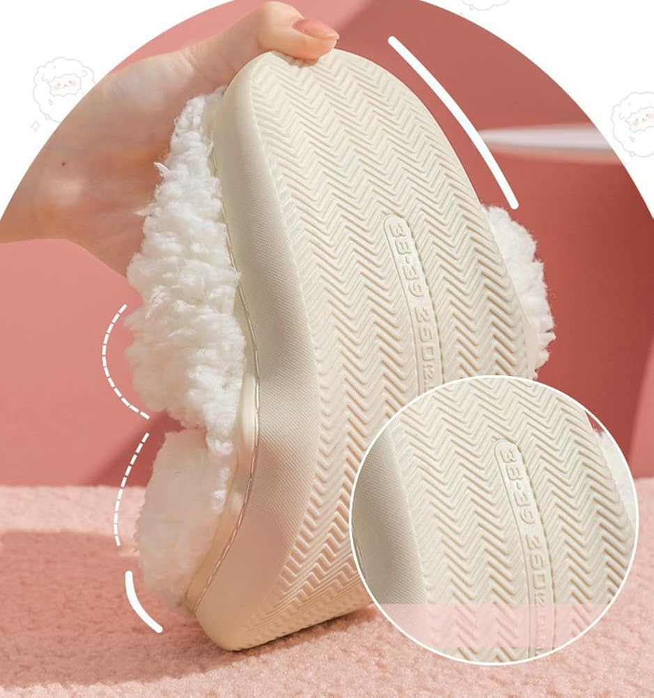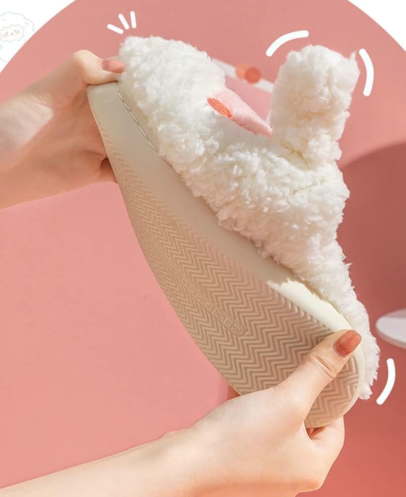 Features: anti-skid bottom, close toe, cute sheep design, lightweight, cozy furry design. The sole gives you safe and secure footing and prevents from scratching the floor, waterproof.