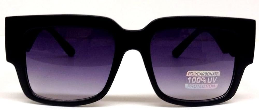 نظارة شمسية مربعة الشكل بلون أسود. يتميز التصميم بميداليات رأس أسد ذهبية مع مفتاح يوناني وعدسات سوداء للحماية من الأشعة فوق البنفسجية بنسبة 100%.