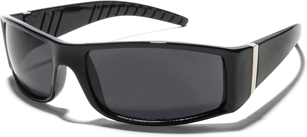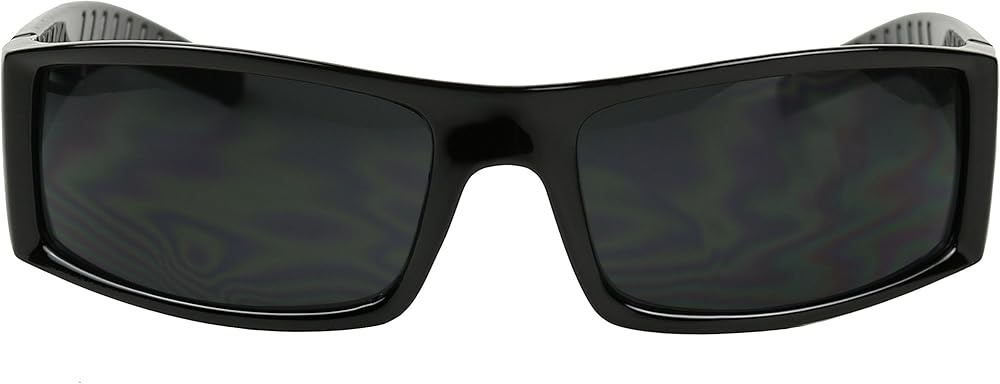 نظارة شمسية أنيقة وخفيفة الوزن بتصميم مستطيل كلاسيكي ملتف حقًا. مصنوعة من مواد بلاستيكية عالية الجودة لضمان عمر افتراضي طويل للمنتج. مزودة بمفصلات معدنية، هذه النظارات الشمسية بنمط الكلب المجنون. العدسات مصنوعة من بلاستيك البولي كربونات مع حماية 100% من الأشعة فوق البنفسجية فئة A وB.