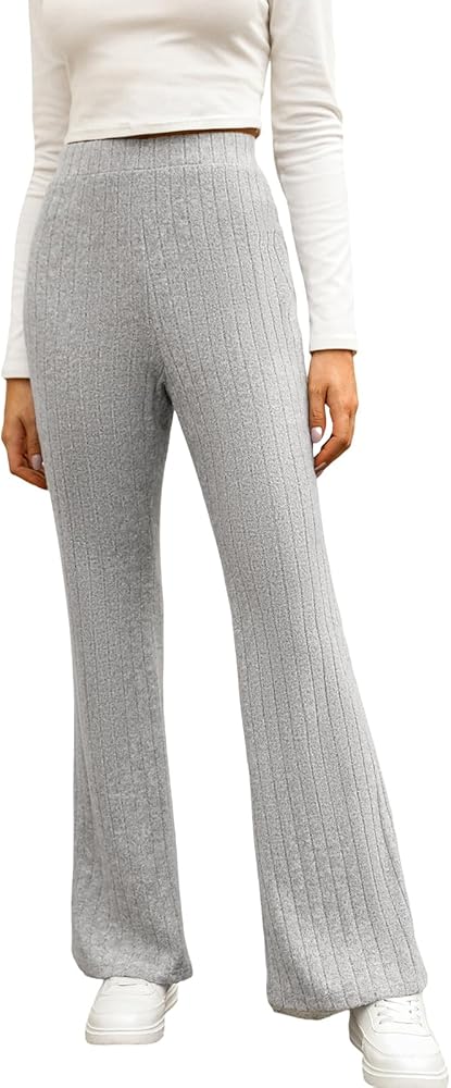 • [Unique Design]: Elevate your casual chic with our Ribbed Heathered Knit Flare Pants! Crafted for comfort and style, these pants feature a soft ribbed heathered knit fabric and a flattering flare silhouette, making them the perfect blend of cozy and fashionable.