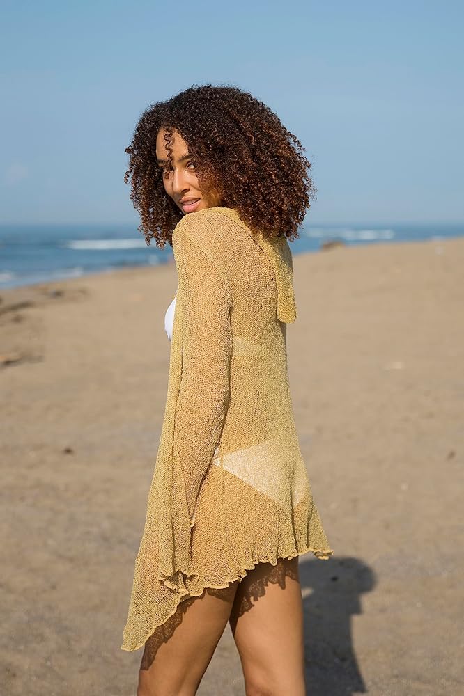 أكمام طويلة مكشكشة رقيقة وحاشية مكشكشة غير متماثلة تضفي على هذه السترة الشفافة لمسة أنثوية جميلة. فقط الكمية المناسبة من التغطية لتبقيك دافئًا، مع نمط مثير وشفاف