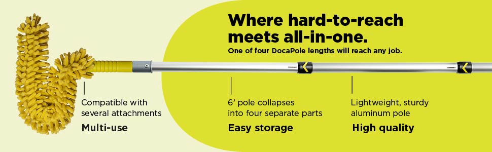 يمكن استخدام عمود تمديد الألومنيوم عالي الجودة من دوكابول مع مجموعة واسعة من الملحقات ويتميز بطرف معدني ملولب قياسي ويأتي مع طرف مفصل بلاستيكي مع دوران 180 درجة. قم بإقران دوكابول مع مجموعتنا الكبيرة من الملحقات لإنجاز جميع المهام التي يصعب الوصول إليها.