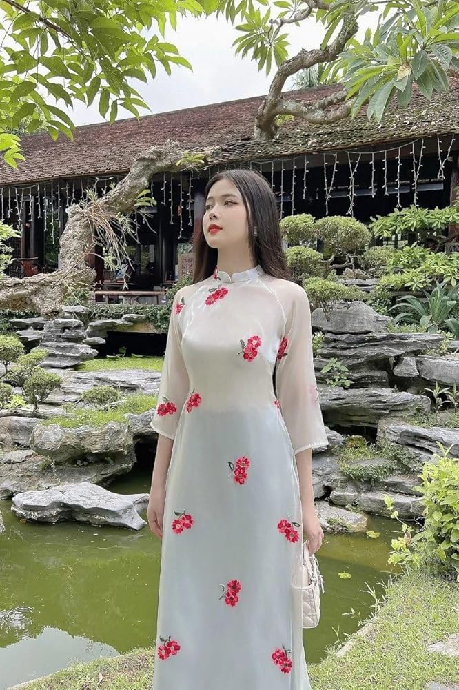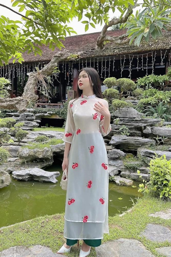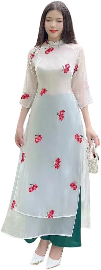 • ❣️ This set includes one Ao Dai Top and 1 Pant Style: Modernized Material: Organza Chiffon and Silk. Non-Stretch