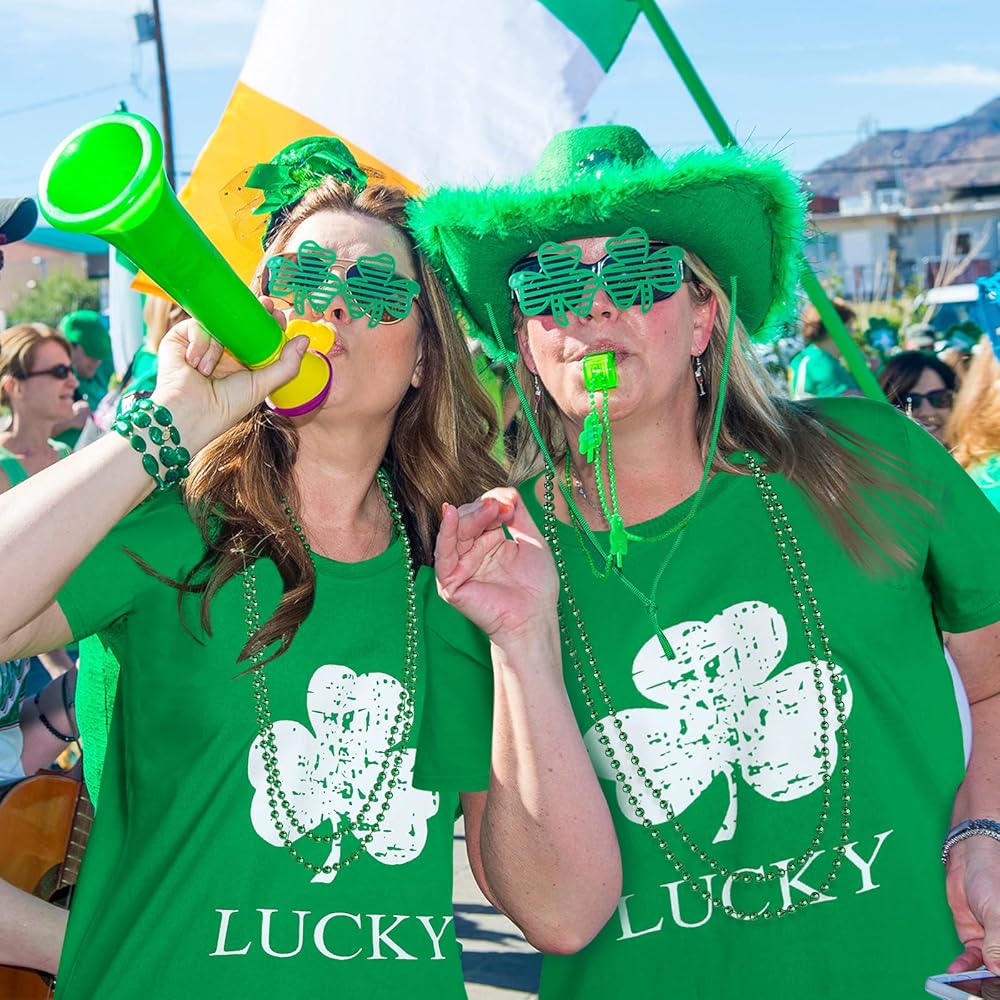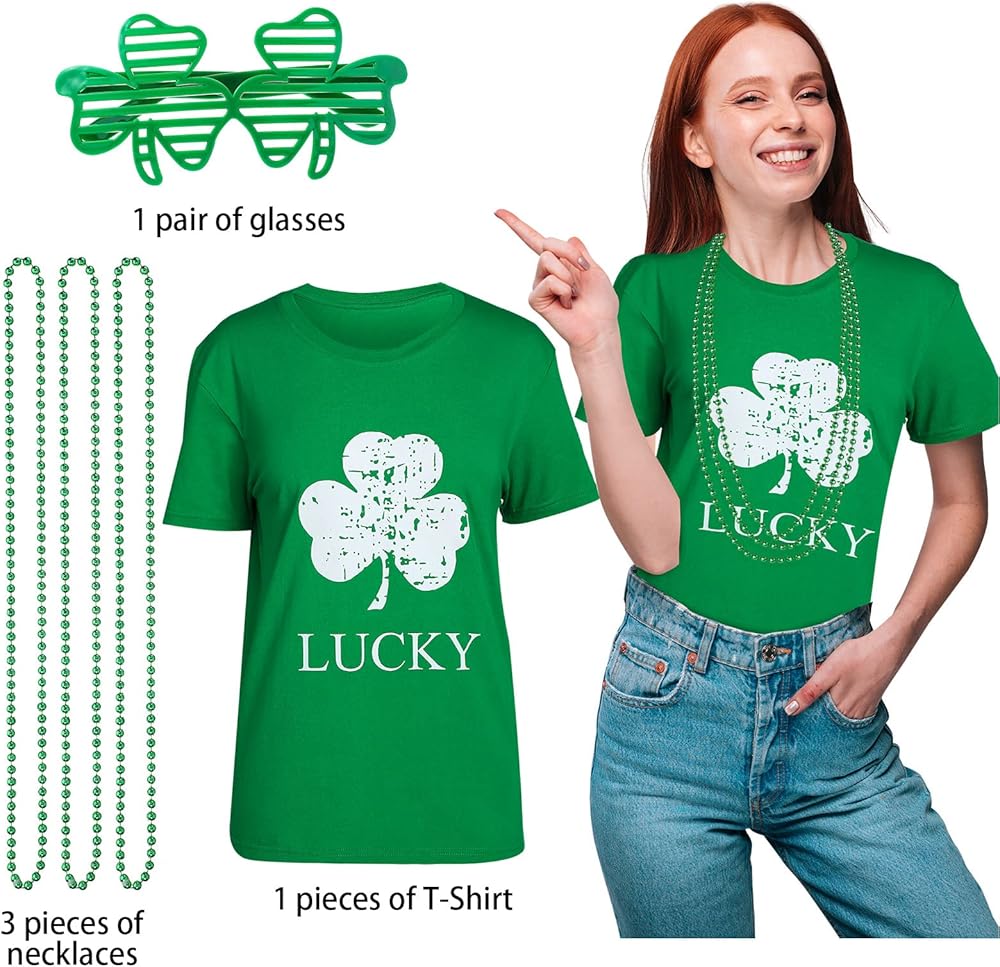 مجموعة إكسسوارات أزياء عيد القديس باتريك مكونة من 5 قطع: تتضمن المجموعة تي شيرت القديس باتريك و3 قطع من القلائد وزوج من النظارات على شكل البرسيم، والتي يمكن أن تلبي احتياجات فستان المهرجان الأيرلندي، وستساعدك مجموعة إكسسوارات الأزياء التنكرية إضافة جو المهرجان. الوقت للحصول على الحظ
