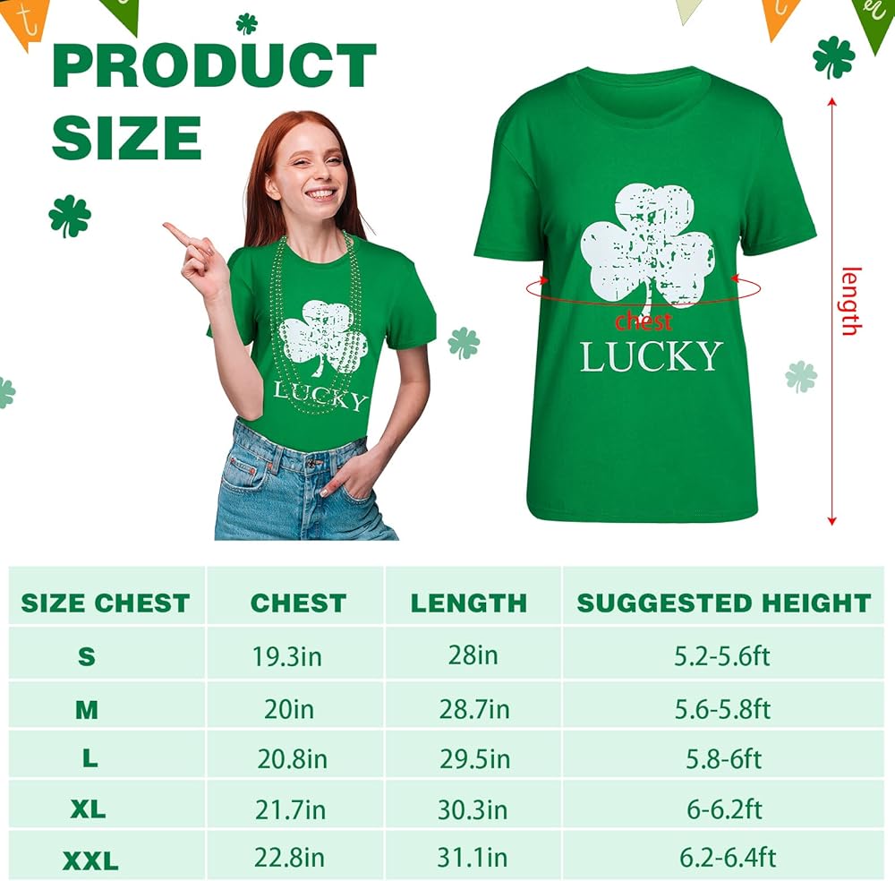 مقاسات القمصان: قمصان البرسيم ذات الثلاث أوراق بإصدارات عادية للبالغين، الحجم: صغير، متوسط، كبير، كبير جدًا، كبير جدًا، لكل من النساء والرجال والزوجة والعائلة والصديق لارتدائها في عيد القديس باتريك السعيد في مارس؛ يمكنك اختيار المقاس المناسب وفقًا لحجمك المناسب
