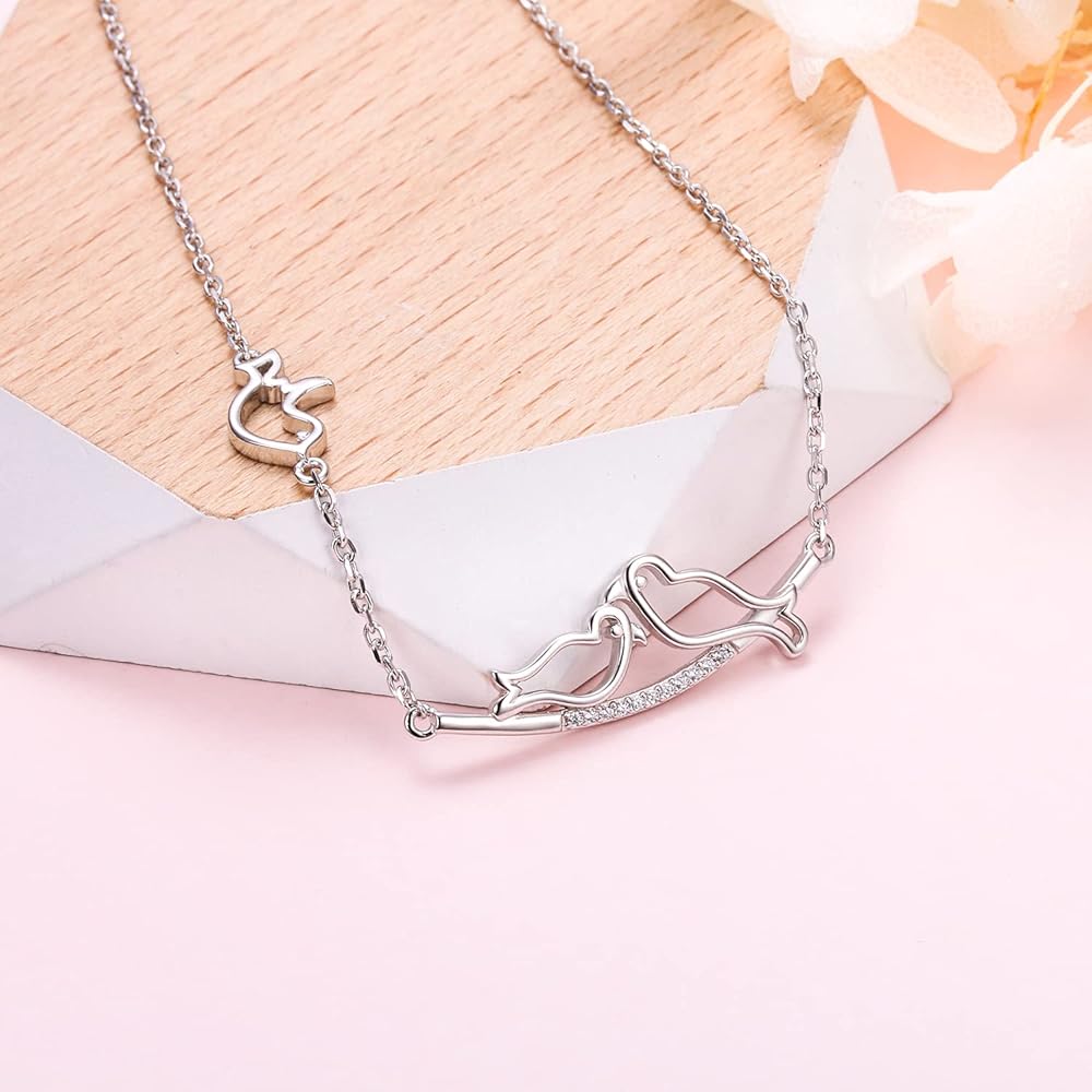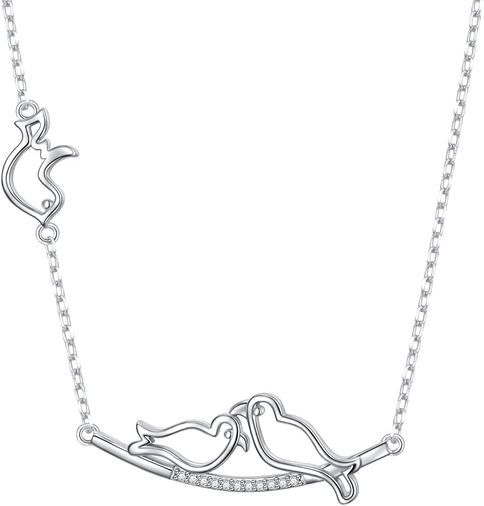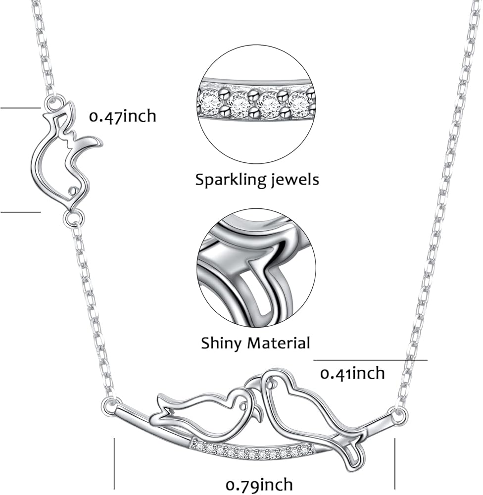 Ladytree S925 Sterling Silver Dainty Simple Animal 3 Birds Mother and Child CZ Choker Necklace,Rolo Chain,16+2 inches, Sterling Silver, Cubic Zirconia