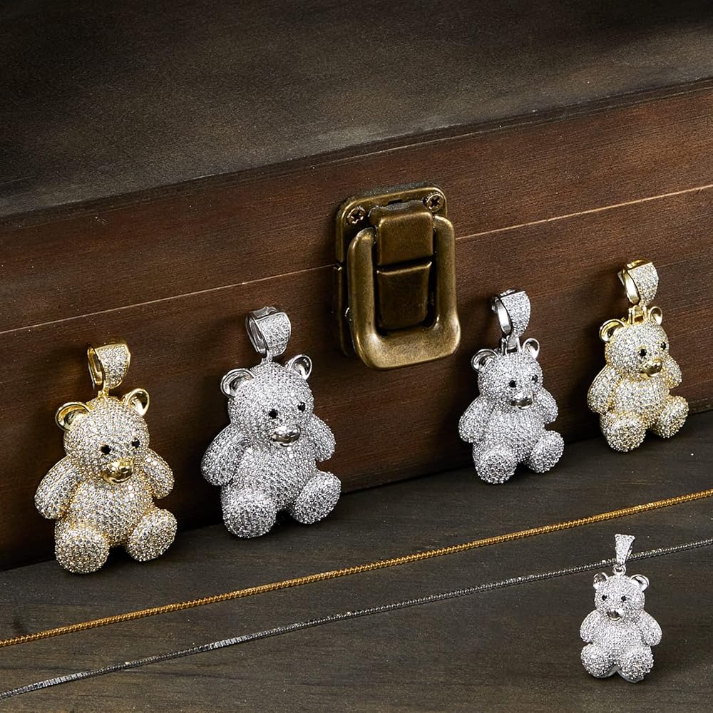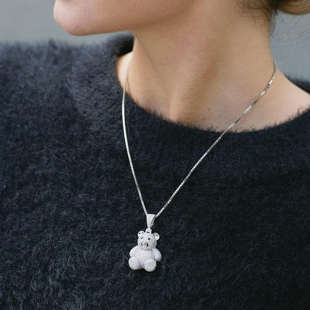 Teddy bear necklace can be defined as symbols of agility, strength, and leadership. Teddy bear charms mean warmth and hug, just like the sense of security you give. This adorable and trendy chain with pendant necklace is made with the finest sterling silver material and sparkling cubic zirconia, which is strong durable, and long-lasting to use. This bear necklace is nickel free and does not readily corrode, rust, or stain with water. These teddy silver necklaces have a highly polished finish that gives them a shiny look and are perfect for everyday wear. The silver box chain necklace for women length is approx 18 inches, and the length of the necklace can be adjusted according to your situation. We have created this silver pendant necklace to help you celebrate your most memorable occasions from the heart and enhance your everyday fashion color statement look. Giving a teddy bear charm necklace, or accepting it as a gift, is a sign of trust, friendship, and security. Women should own a teddy necklace. A cubic zirconia pendant necklace is an ideal cute gift for family, anniversaries, weddings, birthdays, mother, mom, daughter, sister, grandma, nana, Valentine's Day, best friends, and more. Features: 100% Brand new and high-quality chain pendant necklace. This beautiful pendant charm includes a matching 18-inch chain. The inspirational teddy bears charms are perfect as a reminder of your commitment and enduring love. Necklace with charm is perfect birthday, graduation, Christmas and Valentine's Day gift for her. This cute pendant charm necklace gift for any bear or animal lover. Specifications: Material: Sterling silver. Size: Small, Medium, and Large. Color: Gold and Silver