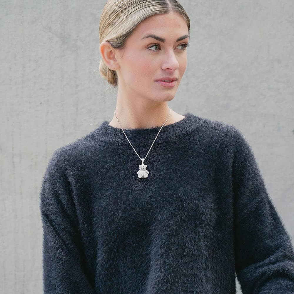 • Necklaces for Women: Refresh your look with this cubic zirconia ''teddy bear'' pendant sterling silver necklace. Our teddy bear silver necklace symbolizes agility, strength, and leadership.