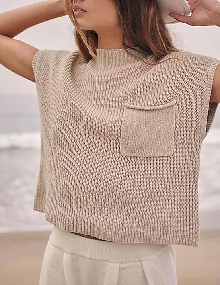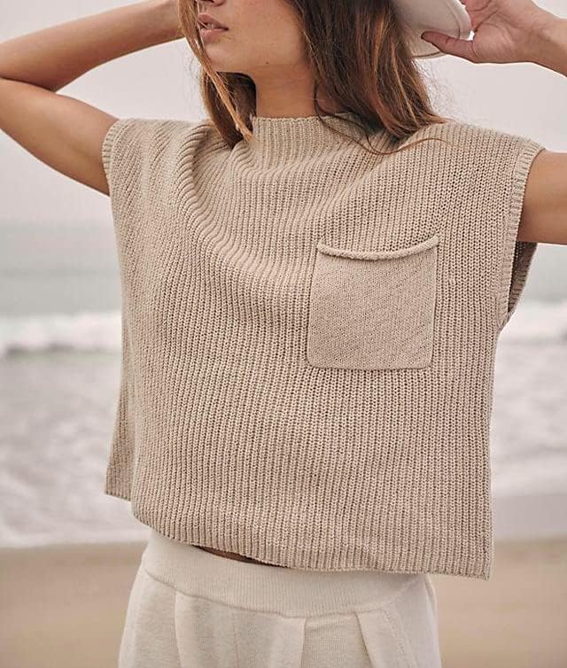 Design: Women mock neck pullover sweater vest, loose fit style, solid color, front pocket, sleeveless knit crop top for women is a stylish must-have in your wardrobe.