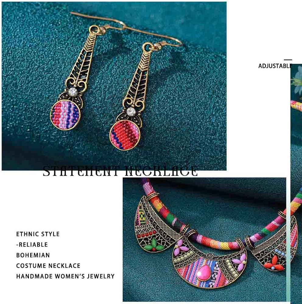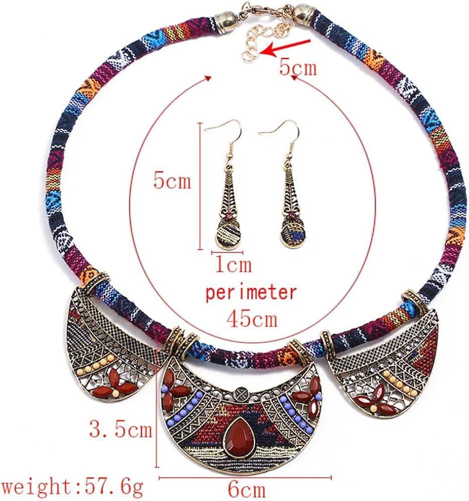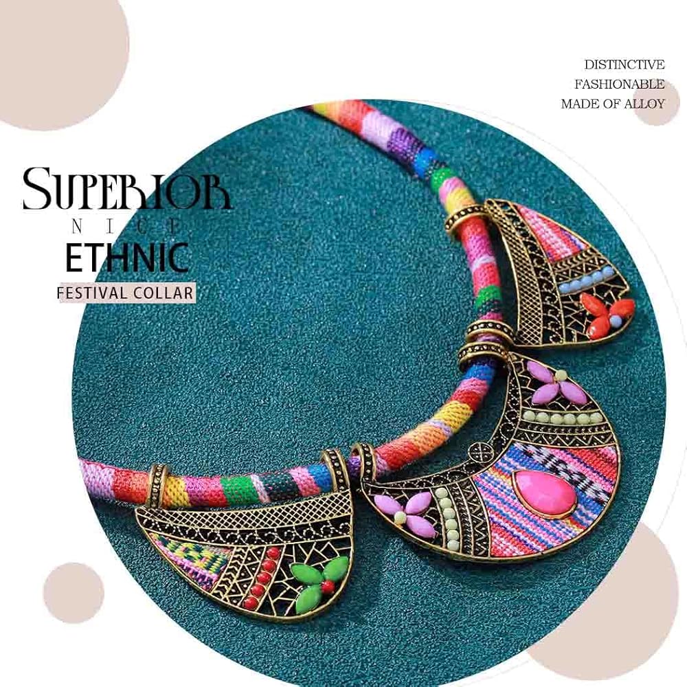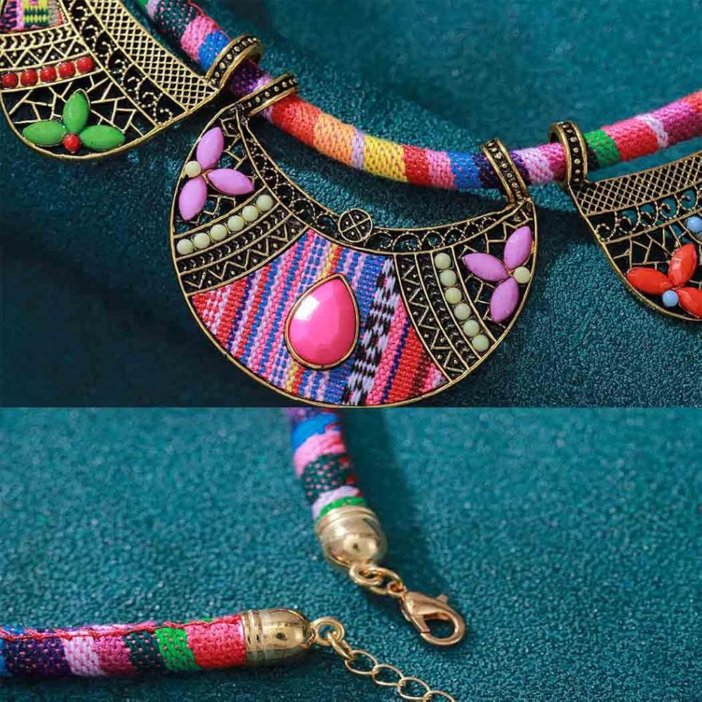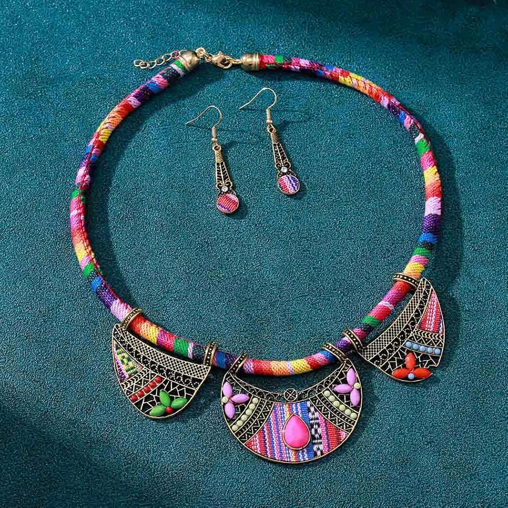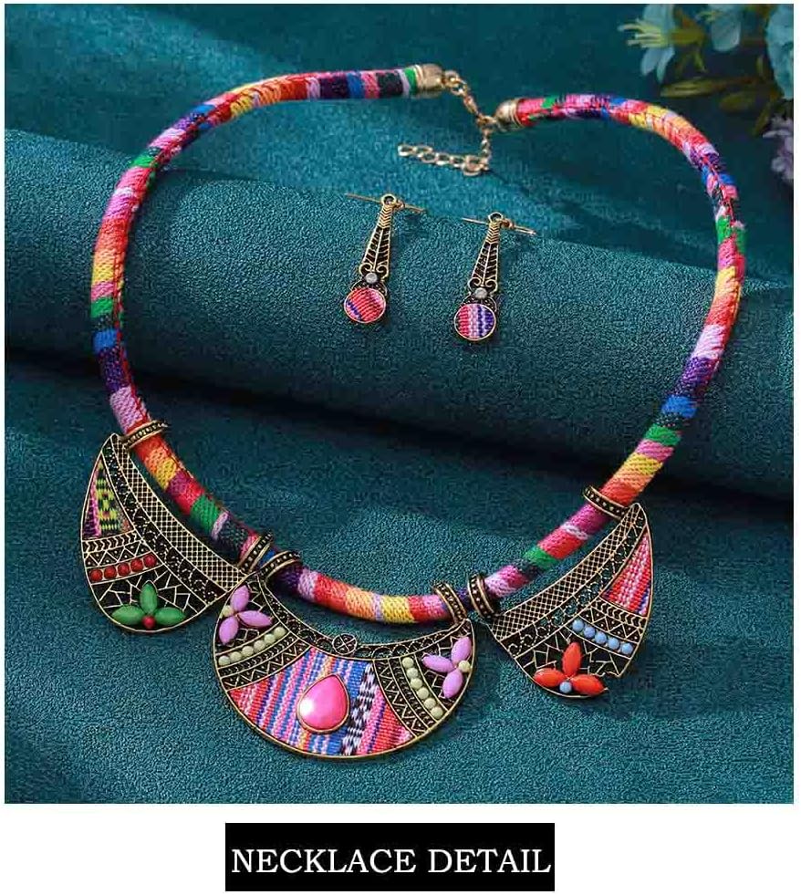 مجموعة المجوهرات الوطنية الأفريقية العرقية الرجعية من Outyua مع أقراط قلادة وقلادة مكتنزة وقلادة قبلية وقلادة بوهيمية ملونة للنساء