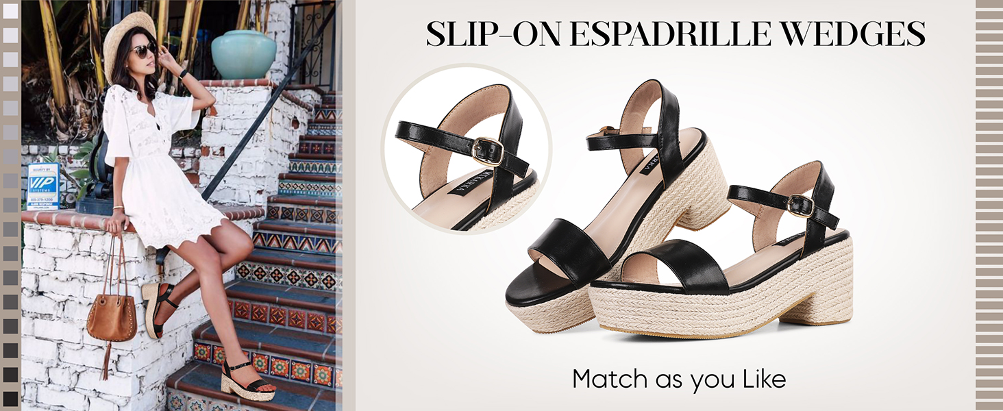 مناسبات لـ: Mikarka تكسر التصميم التقليدي لأحذية الإسبادريل ذات الكعب العريض، وتولد هذه الصنادل ذات المنصات. هذه الأحذية الجميلة مثالية تمامًا للمشي غير الرسمي أو السفر أو المواعيد أو الزفاف أو حفلات الصيف على الشاطئ أو النزهات غير الرسمية، فهذه الصنادل ذات المنصة تتكيف بسهولة مع أي مناسبة.