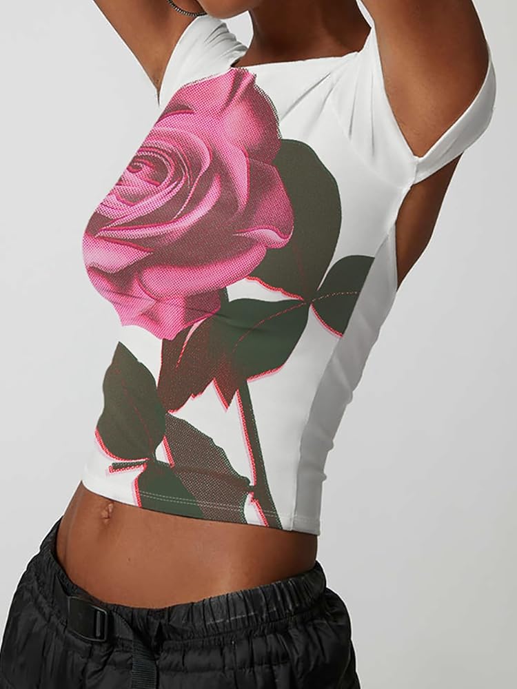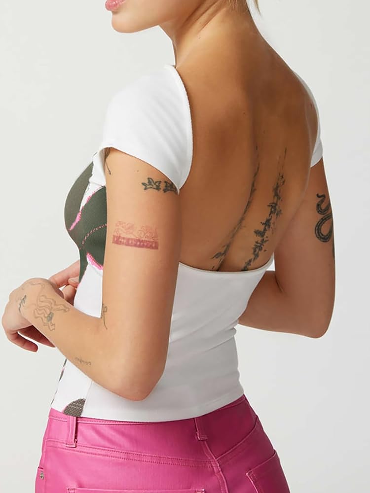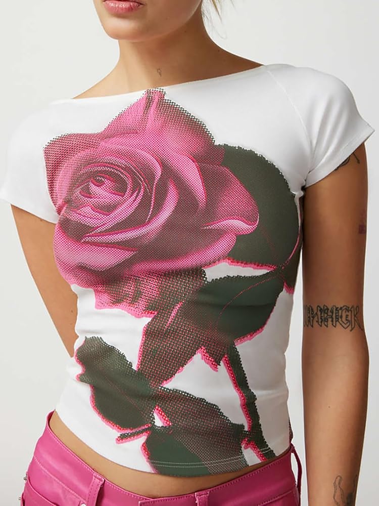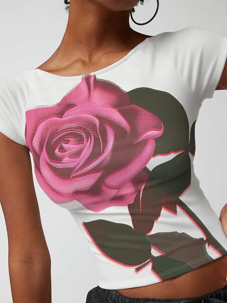 【خامة مرنة عالية】 تي شيرت Y2K المثير برقبة دائرية وأكمام قصيرة للنساء مصنوع من النايلون والبوليستر عالي الجودة، مسامي وخفيف الوزن، ناعم الملمس ومريح في الارتداء.