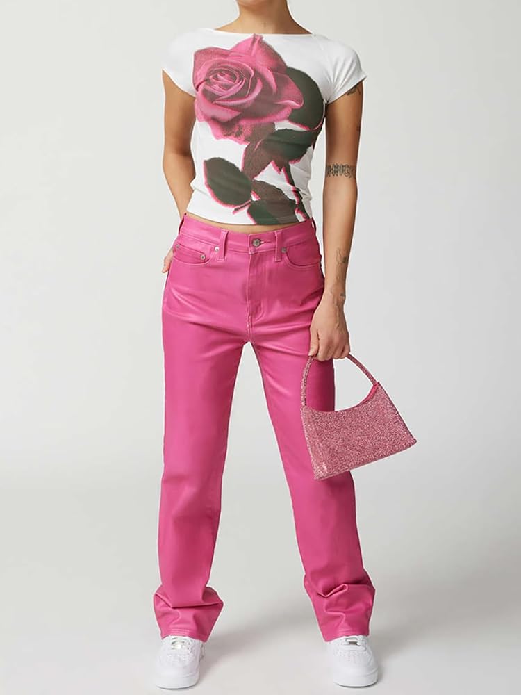 【المميزات: تي شيرتات أنيقة بأكمام قصيرة y2k للسيدات، لون ثابت مع نمط نمط، مقاس نحيف، قمصان علوية برقبة دائرية، تجعل الملابس وملابسك أكثر روعة وأناقة.