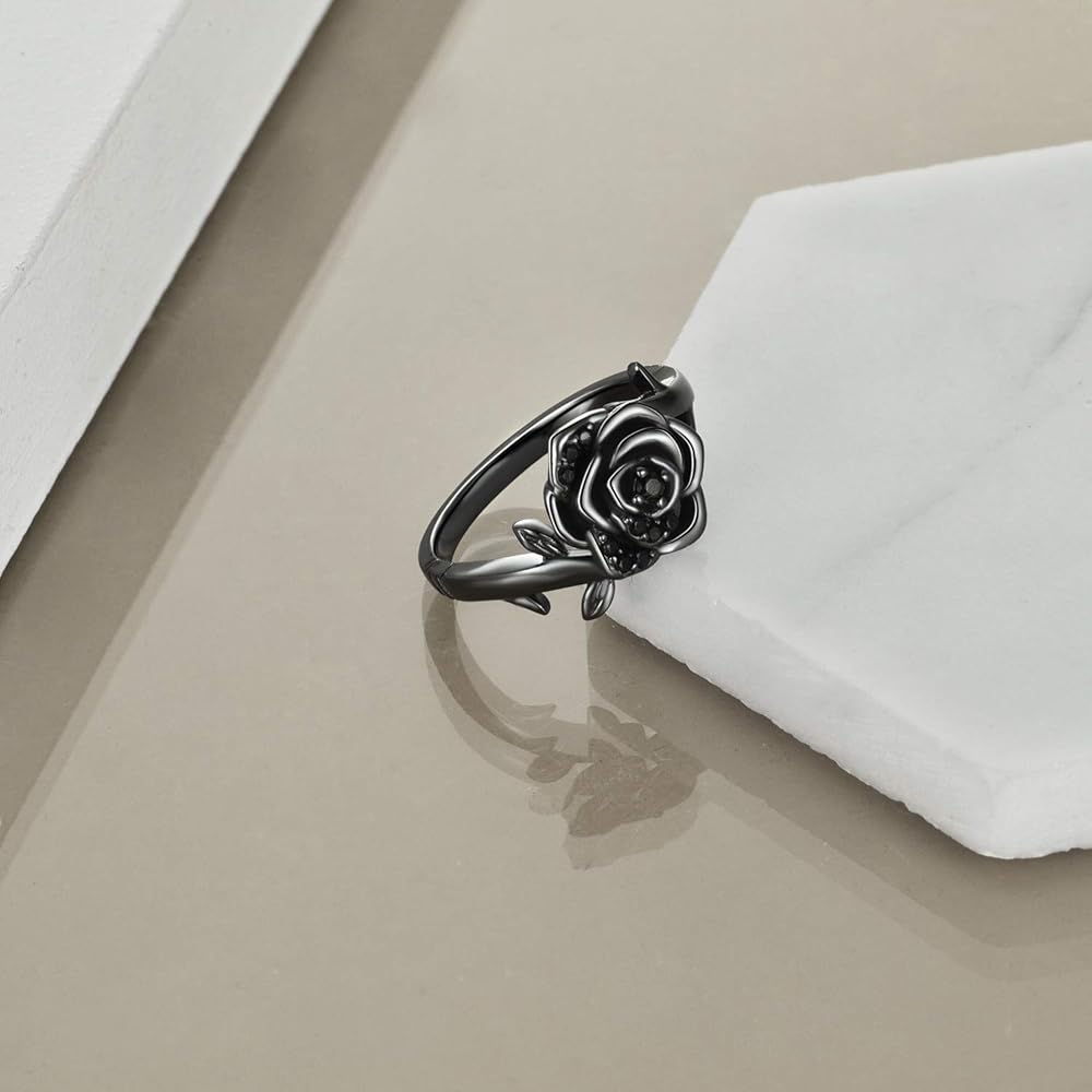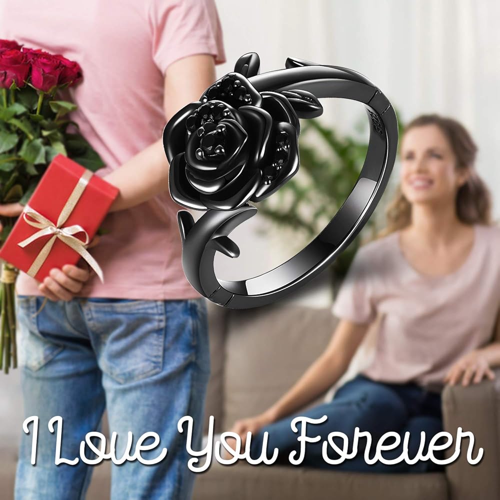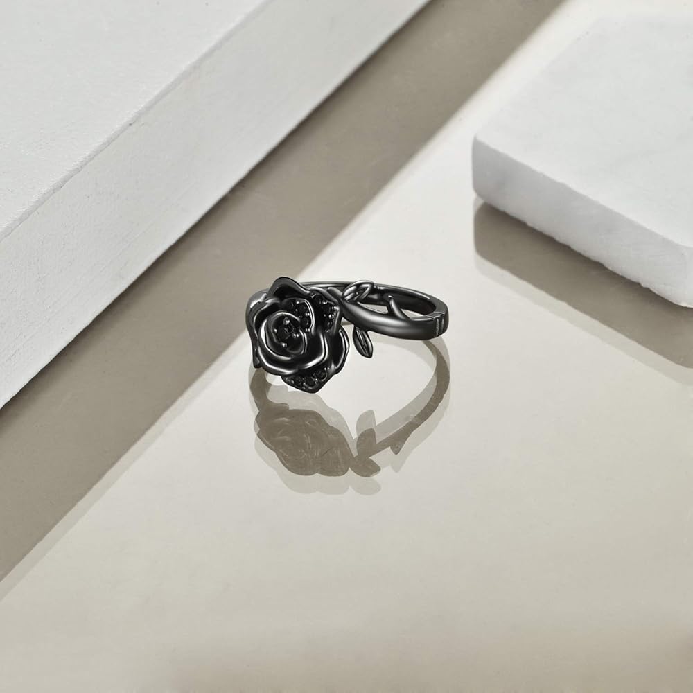 مادة خاتم الورد - الفضة الإسترلينية الفاخرة، هدايا خاتم الورد هذه مصنوعة من الفضة الإسترلينية 925. وردة مطلية بمسدس أسود، وهي خالية من النيكل والرصاص والكادميوم ولا تسبب الحساسية، ومناسبة للارتداء طويل الأمد.