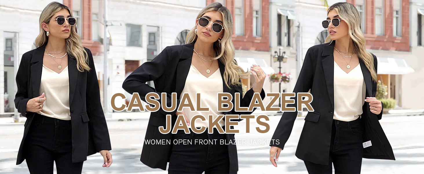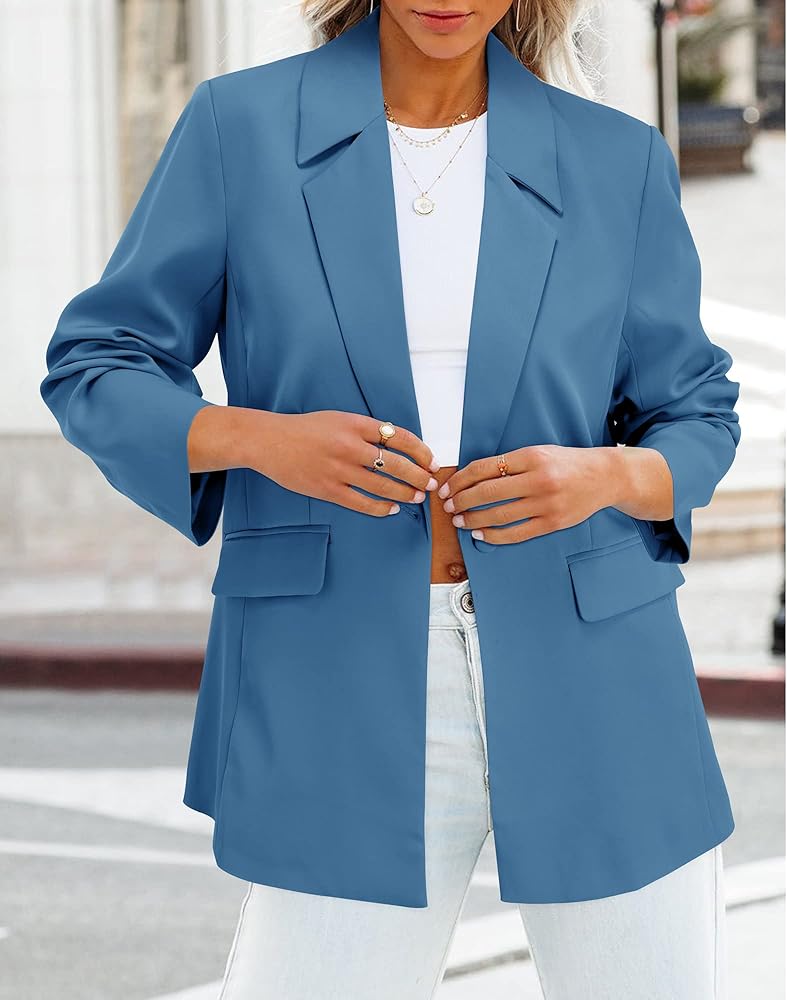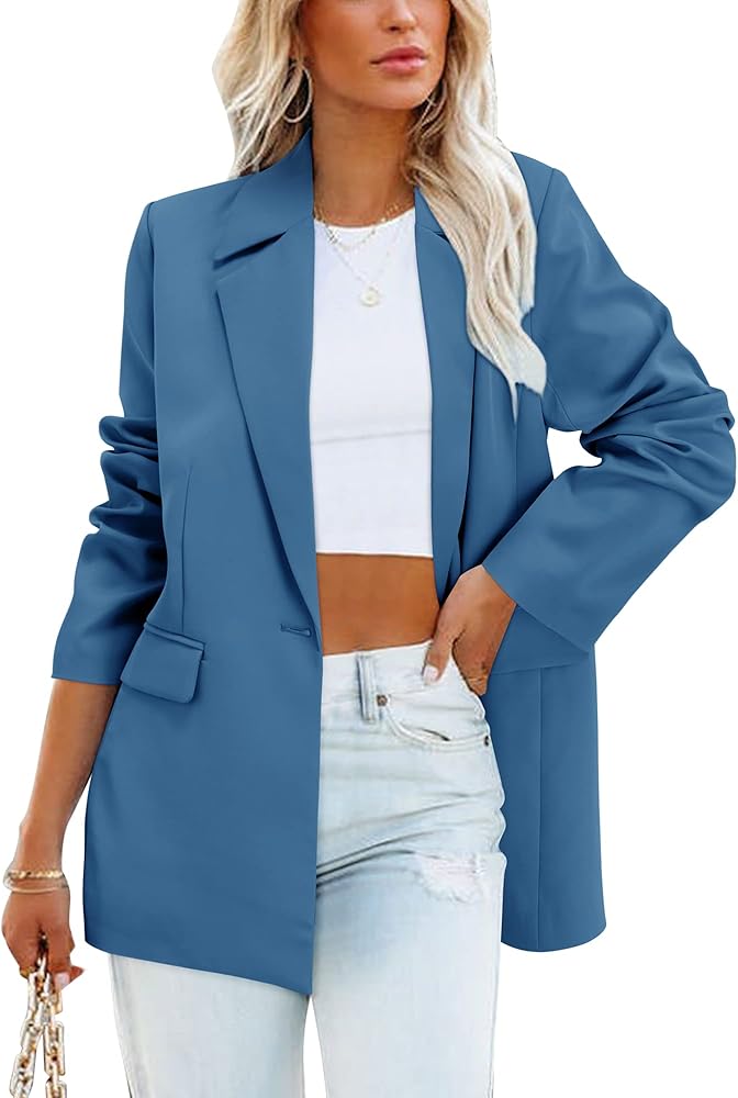 سترة بليزر كاجوال مع جيوب: ارتدي هذه السترة ذات طية صدر السترة مع بنطال جينز ممزق وكعب عالي لرفع أسلوبك اليومي الأنيق، أو طابقها مع بنطال ضيق لمظهر مكتبي كاجوال. ارتدي هذه السترة في مقابلة أو اجعلها كاجوال مع تيشيرت برسومات وجينز!