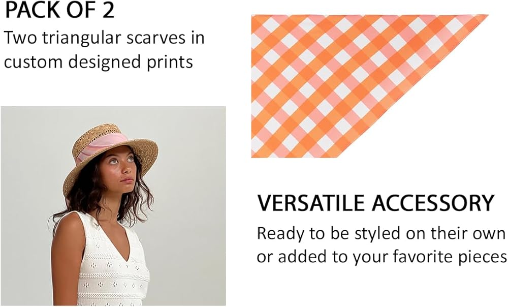 مجموعة إكسسوارات وشاح القبعة النسائية لانعدام اللون - مجموعة من 2 أوشحة مثلثة متعددة الاستخدامات