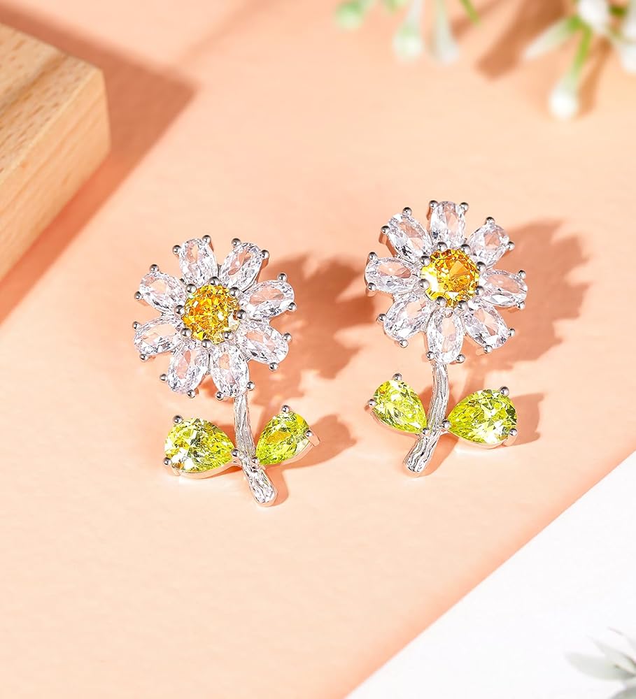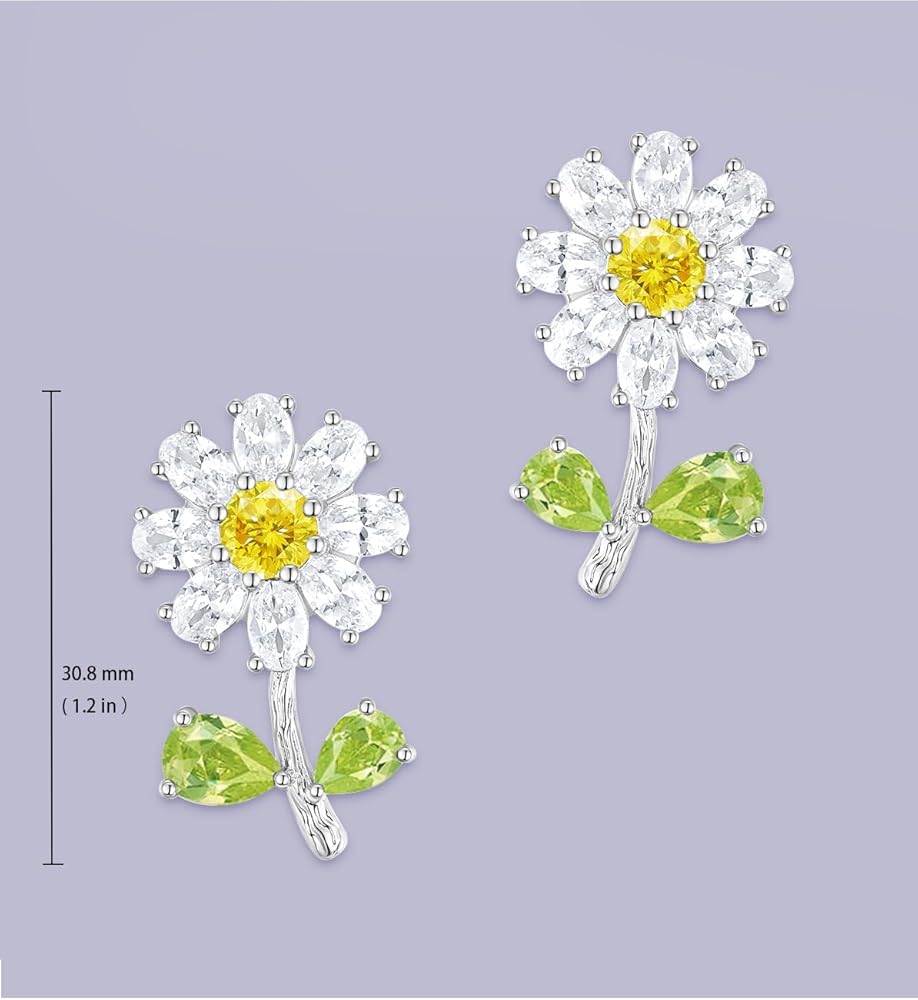 أقراط مميزة - أقراط زهور مصنوعة من حجر الزركون البيضاوي والكمثرى والمستدير والفضة المطلية بمعدن النحاس عالي الجودة، وهي متينة وقوية ولا تسبب الحساسية وخفيفة الوزن ومريحة للارتداء لفترة طويلة