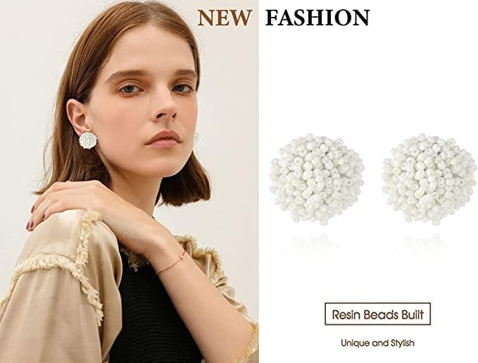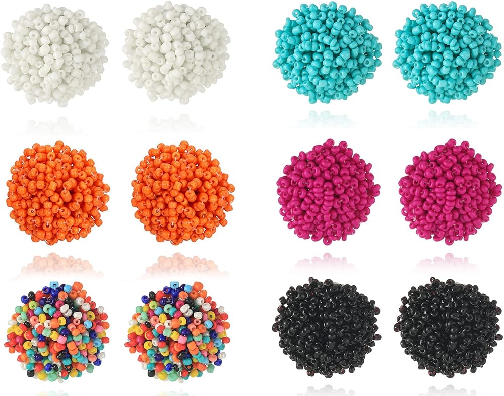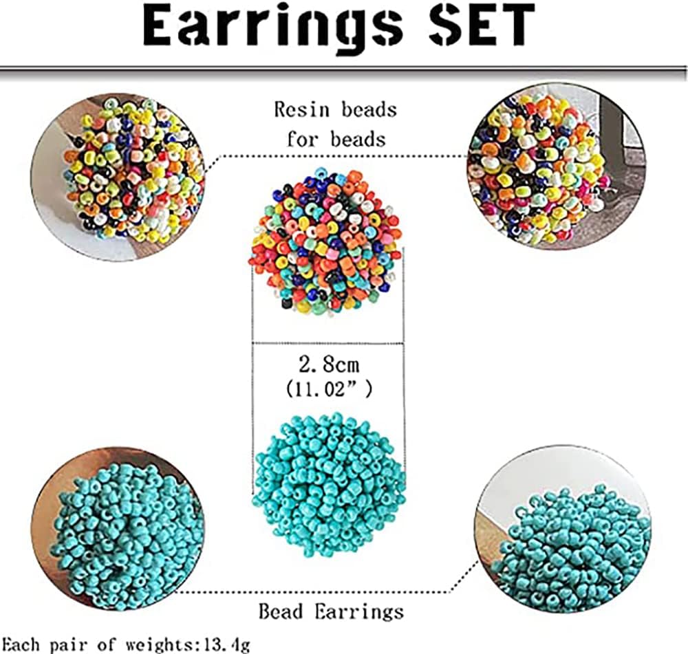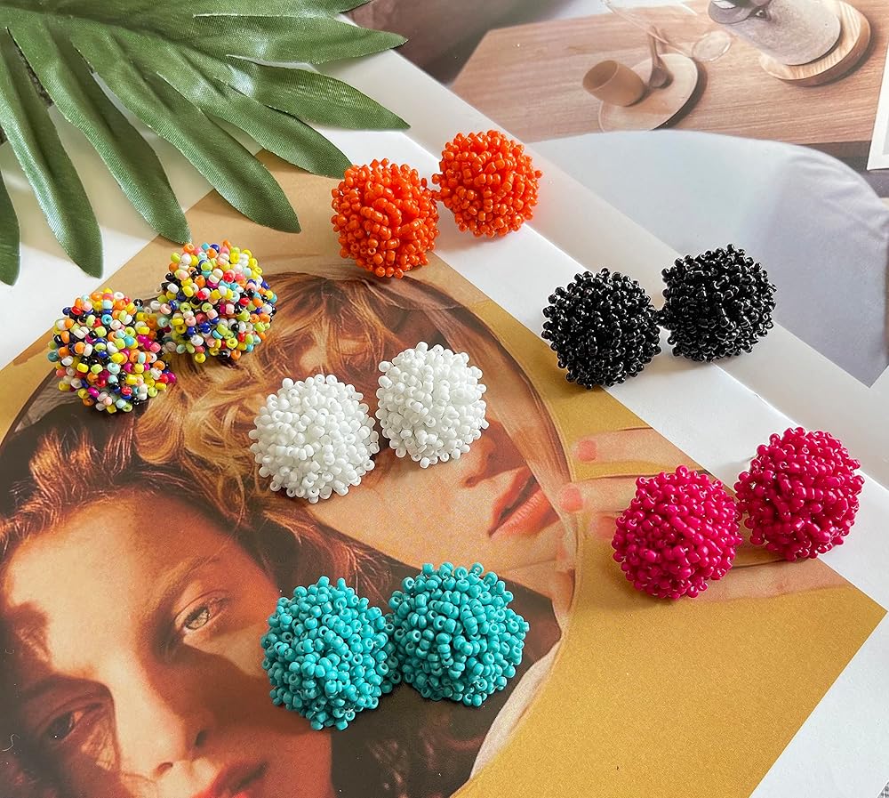 [مجموعة أقراط مطرزة بالبذور] هذه الأقراط المميزة مصنوعة يدويًا بحرفية عالية ومصنوعة من بذور الراتنج، والتي لن تضر بصحتك. أقراط لؤلؤية دائرية رائعة ومتعددة الألوان جاهزة لإضافة التألق إلى خزانة ملابسك الصيفية