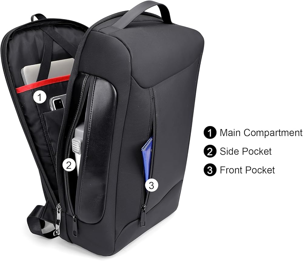 سعة كبيرة: تتميز حقيبة الظهر الذكية هذه بسعة 21 لتر وهي واسعة بما يكفي لحمل العناصر الأساسية أثناء السفر. توجد حجرة كمبيوتر مستقلة مقاس 15.6 بوصة مع أشرطة متقاطعة، وحجرة iPad، و3 جيوب مفتوحة في الحجرة الرئيسية. يوجد جيب بسحاب مقاوم للماء في الجزء الأمامي من حقيبة الظهر، والذي يمكن أن يحمي أغراضك من النقع. تحتوي حقيبة الظهر أيضًا على جيب جانبي بسحاب وجيب خلفي بسحاب.
