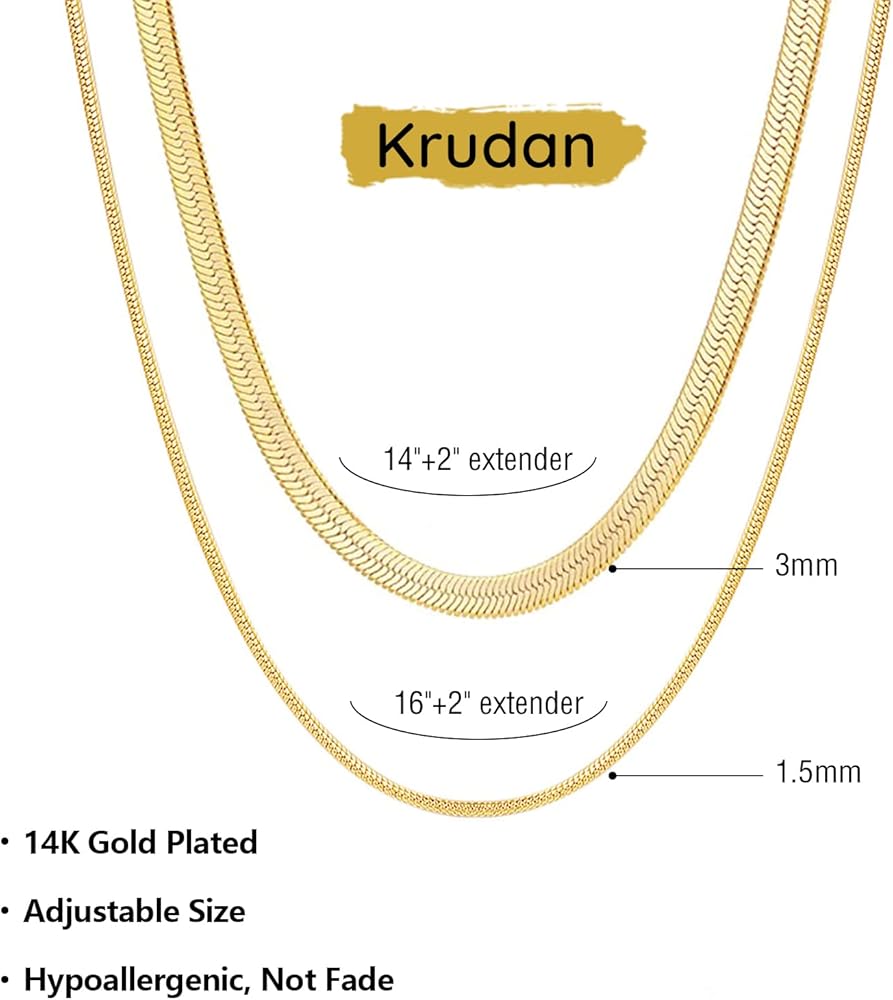 【المقاس】: قلادة سلسلة متعرجة: عرض 3 ملم / 14 انش + 2 انش طول الموسع. سلسلة ذهبية على شكل ثعبان: عرض 1.5 ملم / 16 انش + 2 انش طول. وصلة تمديد 2 انش تجعل هذه القلادة مناسبة لمعظم الأشخاص، يمكنك ضبط المقاس الذي تريده.