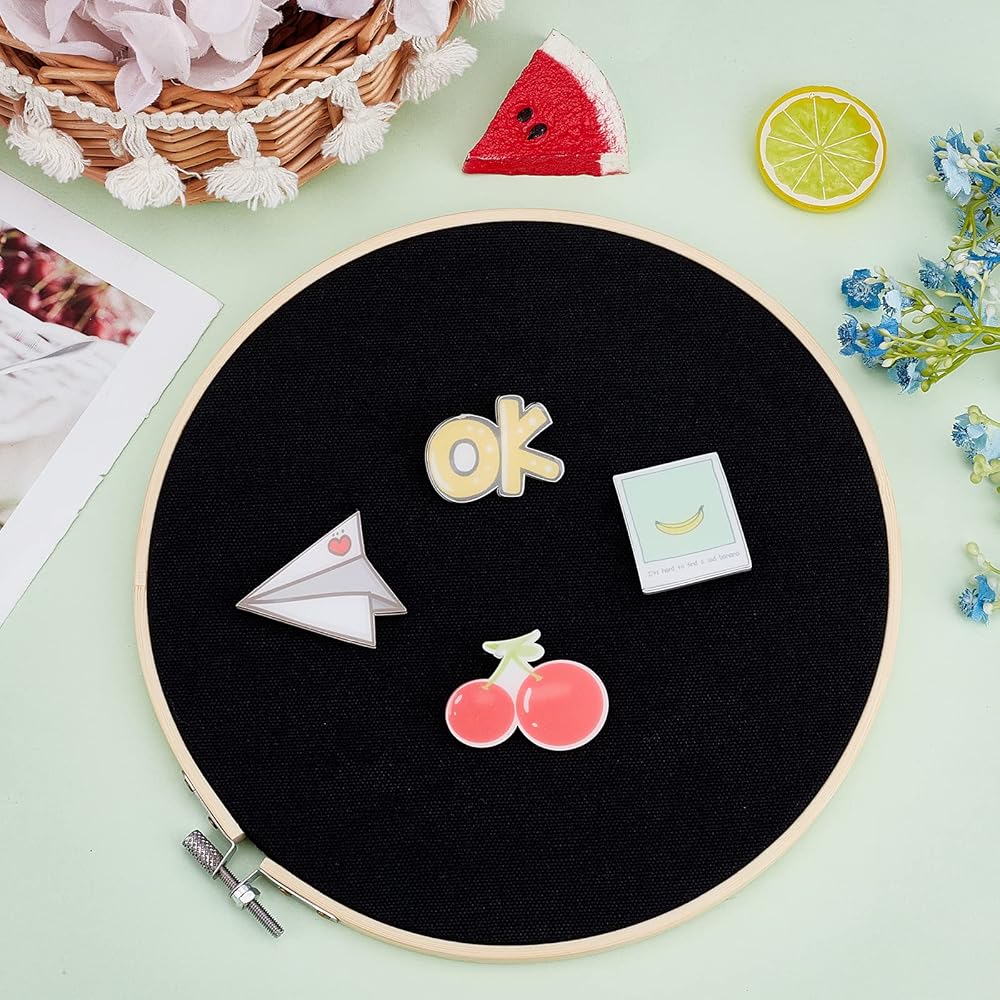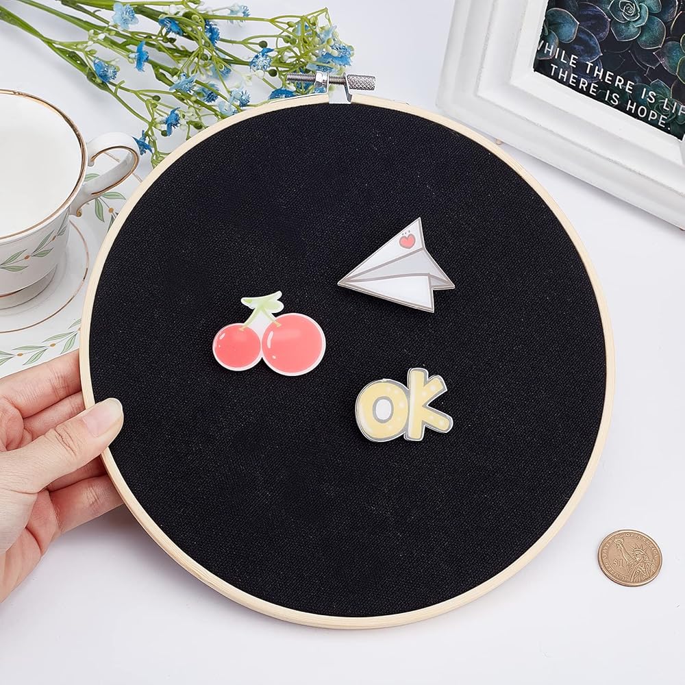 FINGERINSPIRE جدار معلق دبوس مجموعة عرض موقف 7.87 بوصة مستديرة سوداء بروش دبوس عرض لوحة قماش المينا دبوس عرض حامل مع طوق التطريز لعرض دبابيس المجوهرات بروش