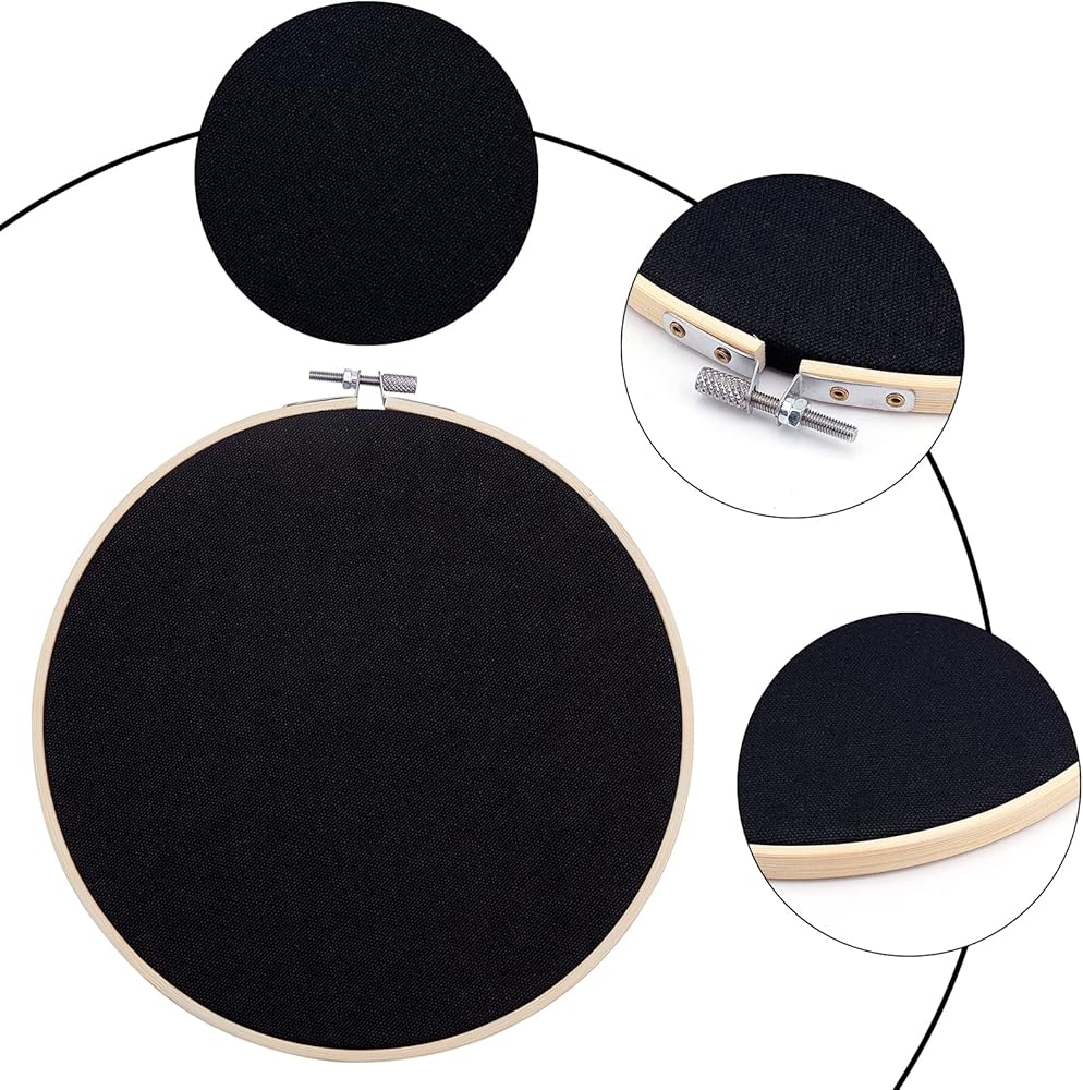 【High Quality Material】: Made of black premium canvas, soft and delicate, the edges are secured with embroidery hoop made of bamboo wood. Sturdy and not easy to wear and can be used for a long time.