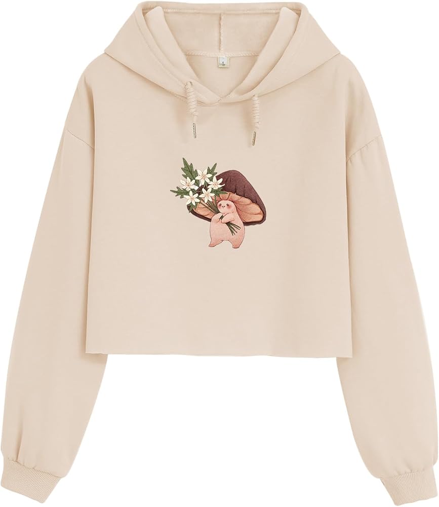 【Material】 The Mushroom Crop Hoodie Is Made Of Soft Cotton Polyester Blend With Thermal Fleece Lining. Cute Sweatshirts For Teen Girls Is Super Soft And Skin Friendly, Keep You Cozy And Warm In Spring, Fall And Winter.