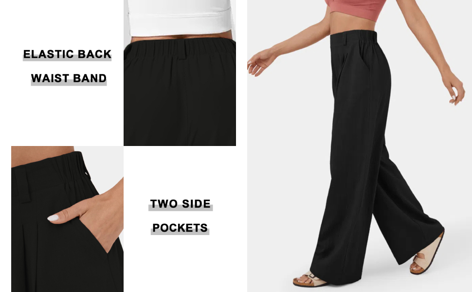 Convenient Elastic Waist: The waistband of the palazzo pants for women is flat on the front but elastic in the back,leaveing room to move while maintaining the look of a perfect fit.The elastic waistband keeps the waist comfortable and always fitting,hides the belly pouch well.The halara pants also have a belt loops for you to dress it up more and add a belt.