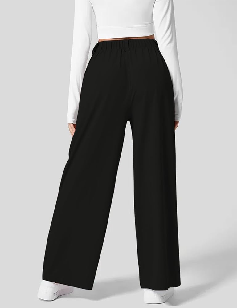 Must-have Outfit: The wide leg trouser pants for women is loose enough to be comfortable but tailored enough to use in a wide variety of situations from dress up to dress down.Heels and button up for work, or sneakers and a cropped t shirt for weekends!These slacks for women are a must-have for anyone looking for a comfortable and stylish casual outfit!