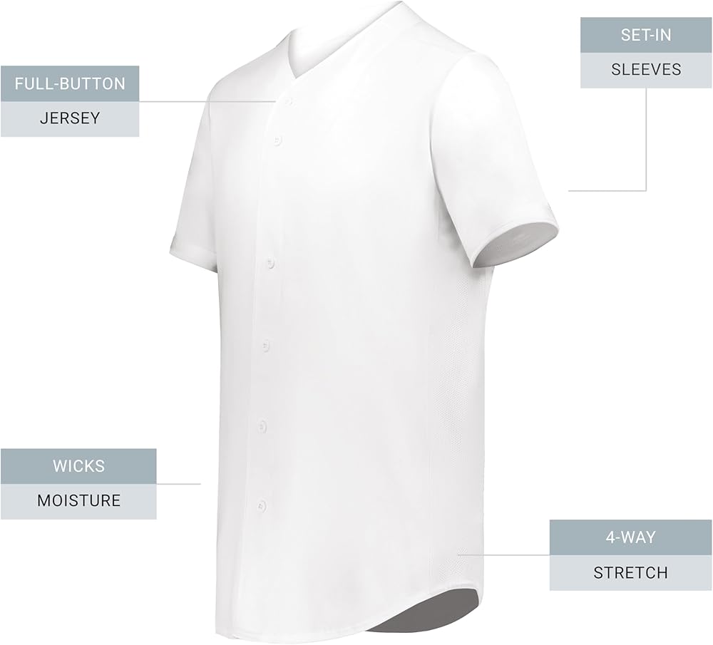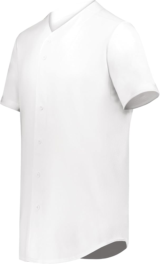 Race to home plate in the Cutter+ Full Button Baseball Jersey from Augusta Sportswear Brands. This jersey features moisture wicking 96% polyester/4% spandex lightweight knit with color secure® technology that helps prevent dye migration. Designed to keep you cool, this on-field jersey protects against the sun with 50+ UPF.
