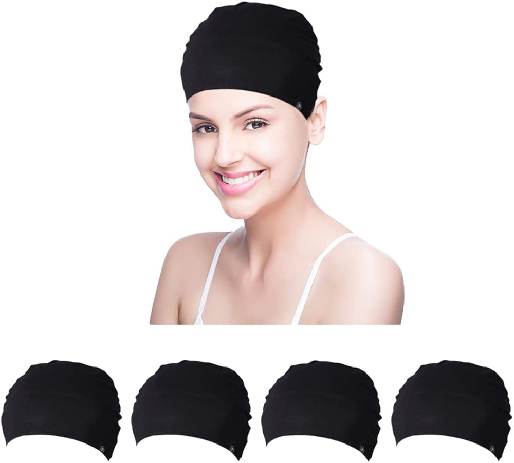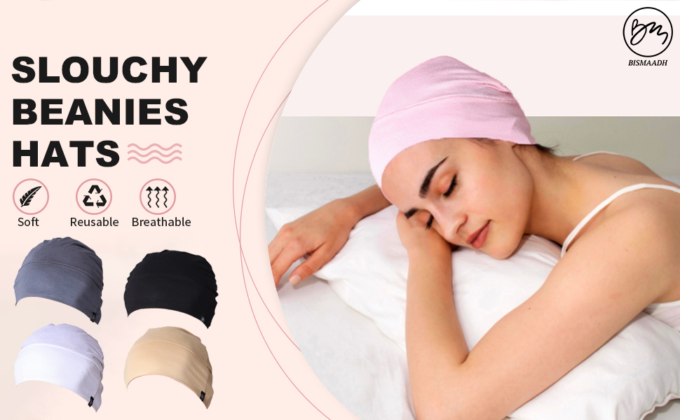 🎓Package Included: you will get 4 black color of sleep cap beanies hats for woman, including black, black, black, black enough for you to build your own style outfit easily with this simple and colorful sleep cap set