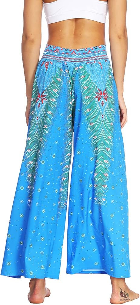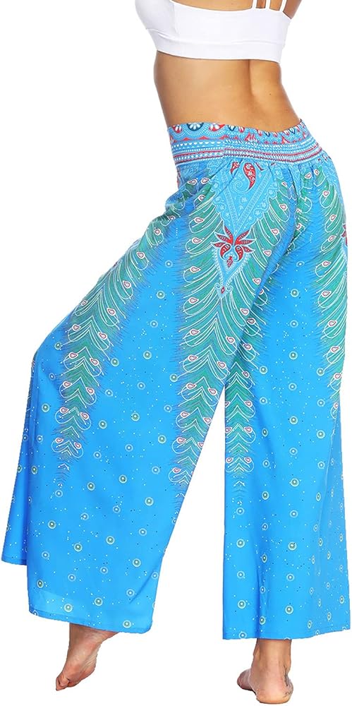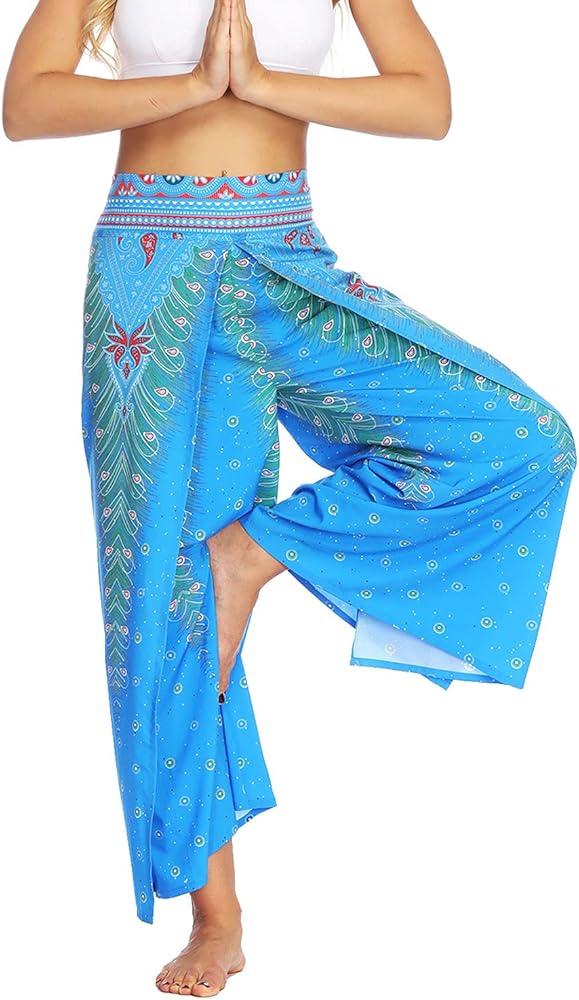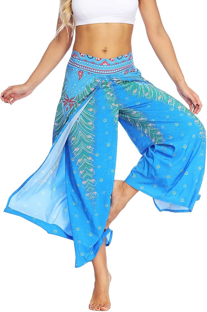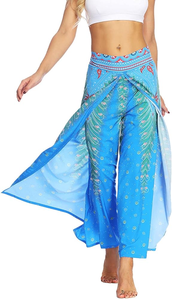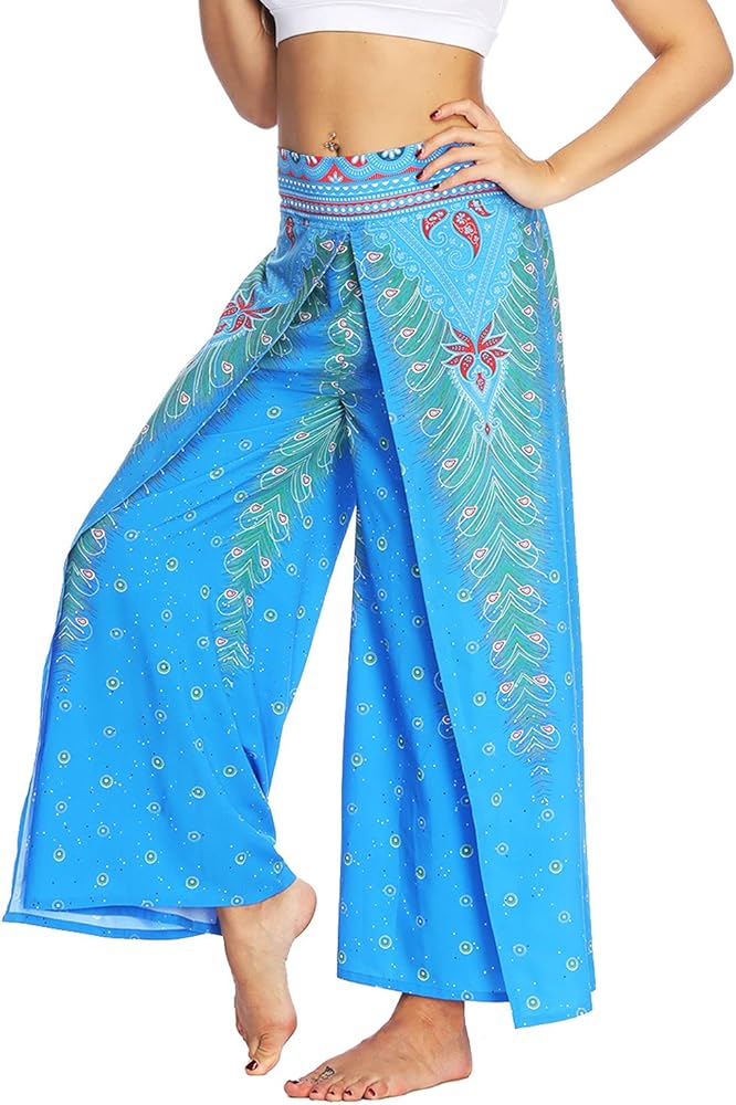 7. High slit wide leg pants,flowy,wide cut flare feature,very cool when walking. High waist,fashion bohemia pants for a fashion and chic look. It has this season's hottest boho print,style casual nature,give more sense of line sence,show tall and slim.