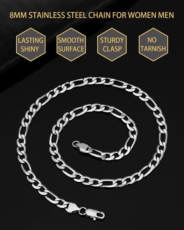 • ➤مثالية للقلادة - خيارات متعددة للعرض والطول، 18 بوصة 20 بوصة 22 بوصة 24 بوصة 26 بوصة 28 بوصة طول 30 بوصة، عرض 6 مم/8 مم/9 مم. أكمل ملابسك بقلادة سلسلة كلاسيكية أنيقة.