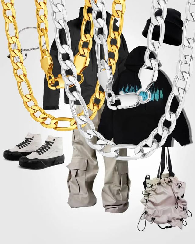 • ➤ سلسلة ربط فيجارو قوية - تفاصيل بناء متينة. سلاسل مغني الراب الهيب هوب أسلوب رائع!