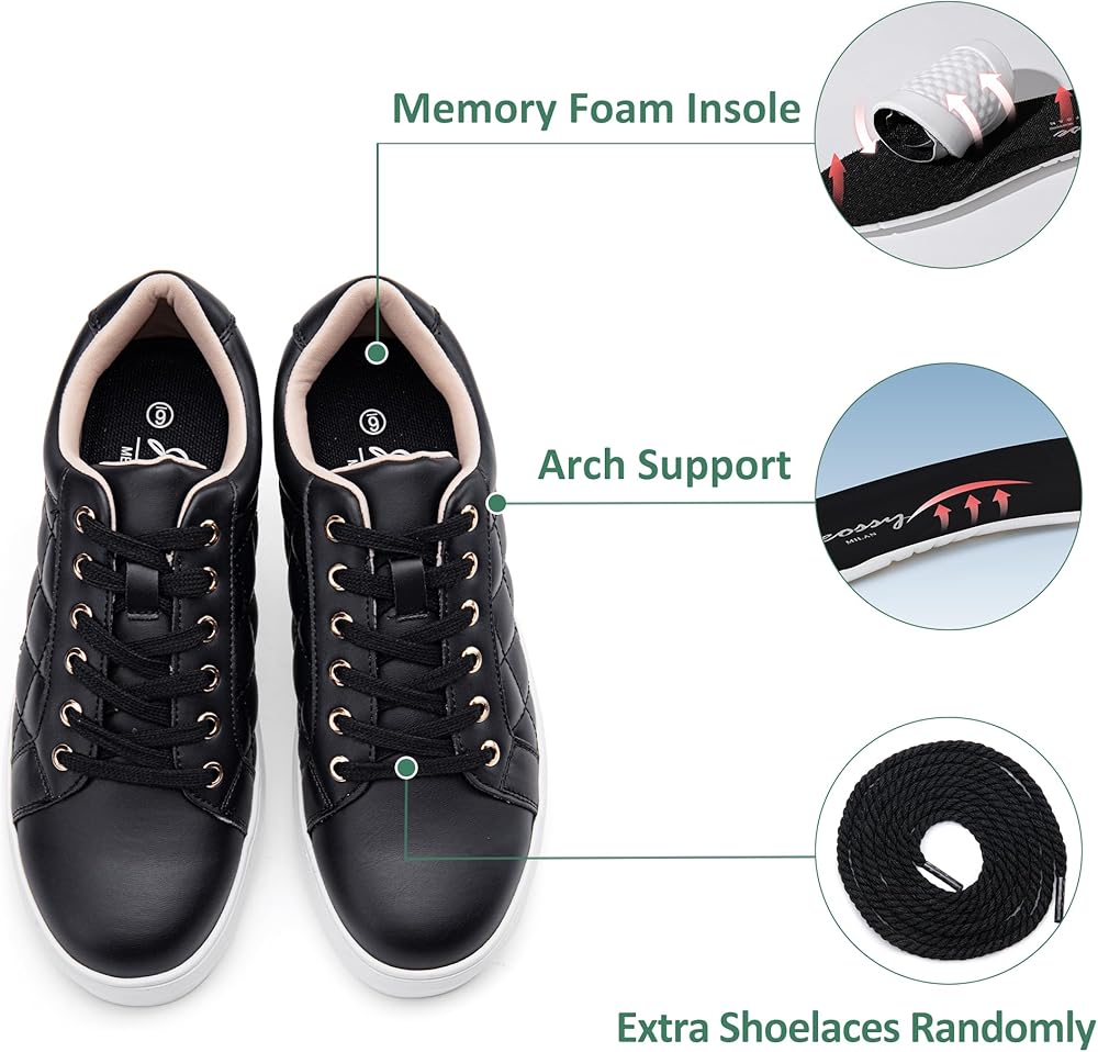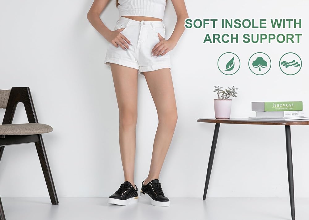 • [All-Day Comfort] With a arch support memory foam insole and soft lining, these casual Lace-up low platform sneakers offer all-day comfort.