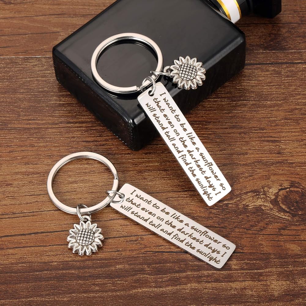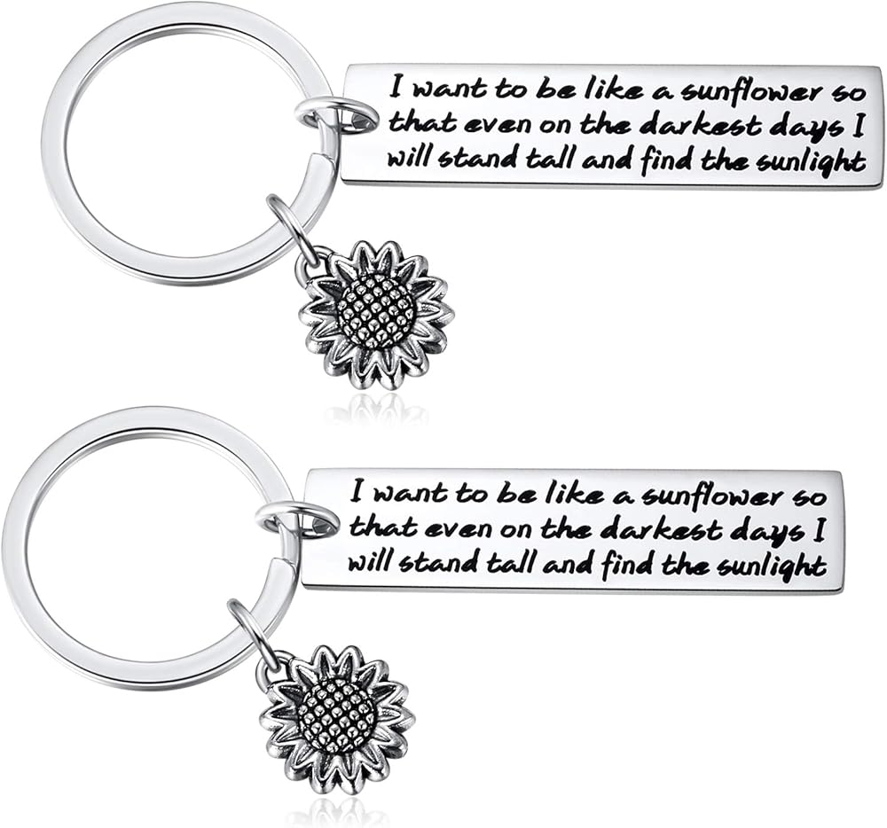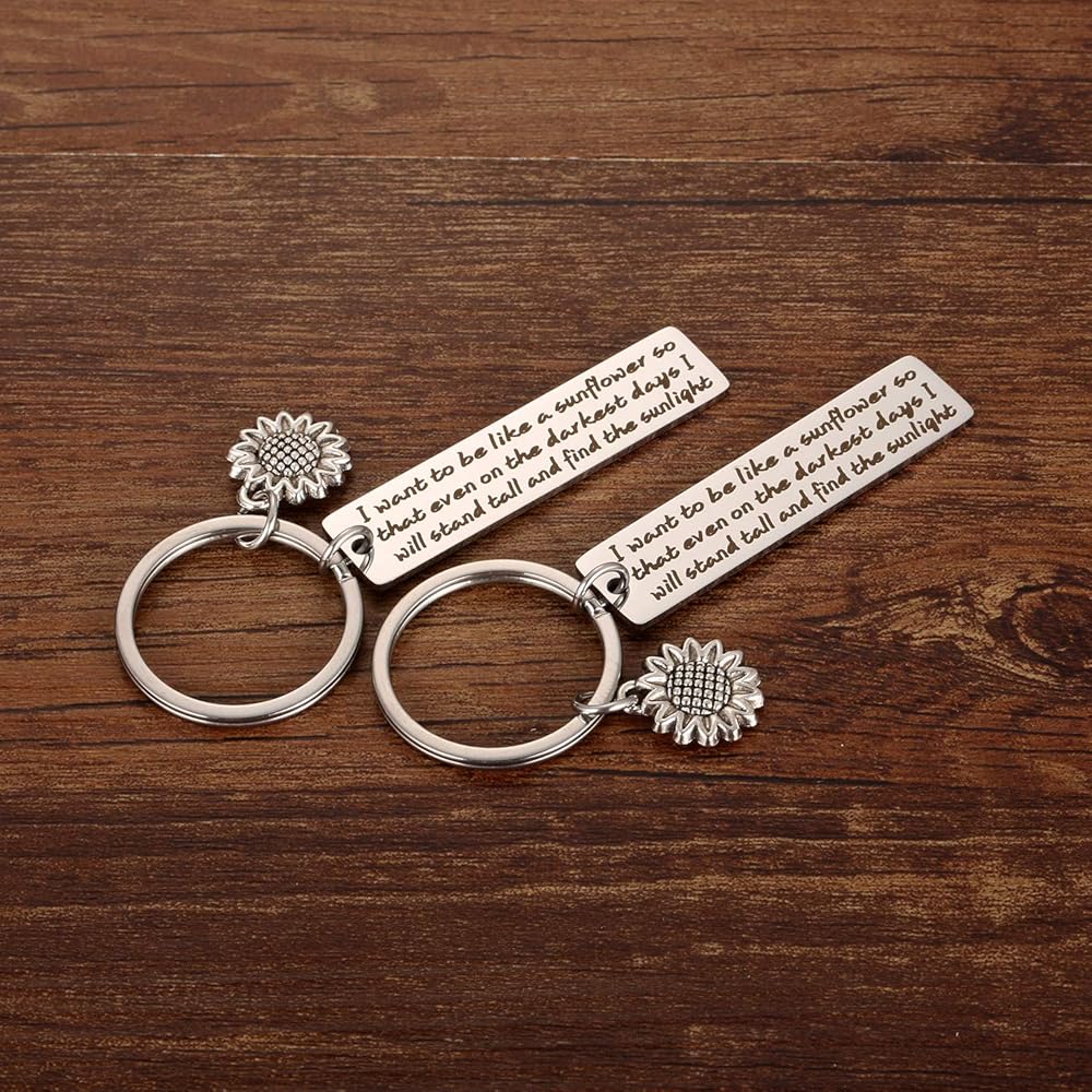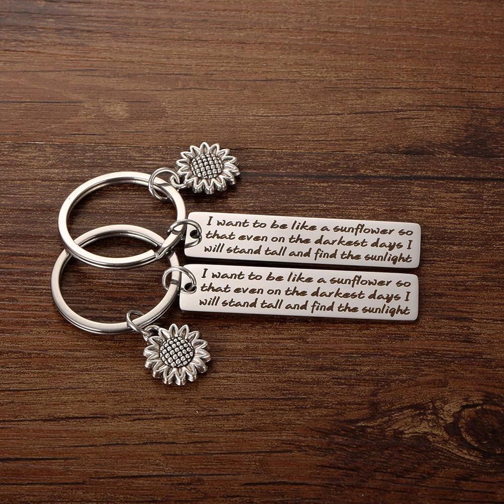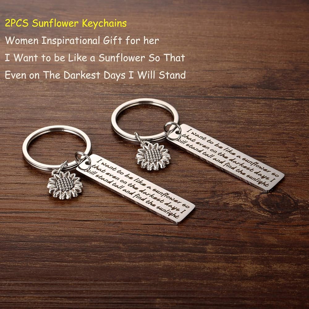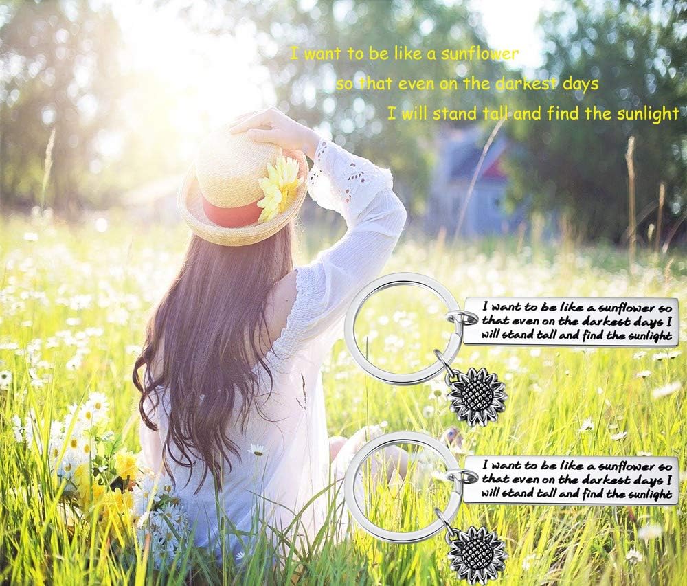 سلسلة مفاتيح عباد الشمس هدايا ملهمة للنساء - قطعتان أريد أن أكون مثل عباد الشمس بحيث حتى في الأيام الأكثر سأقف سلاسل مفاتيح الأزهار الروحية للفتيات والنساء والأصدقاء هدايا المجوهرات